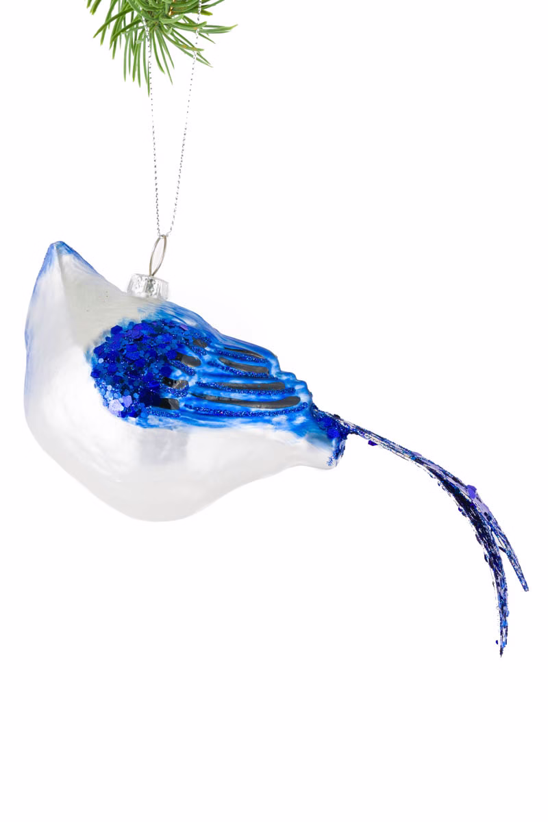SKU: DK4439Cute Googly-Eyed Baby Blue Feather Clip-on Bird Ornament with Glittered Body