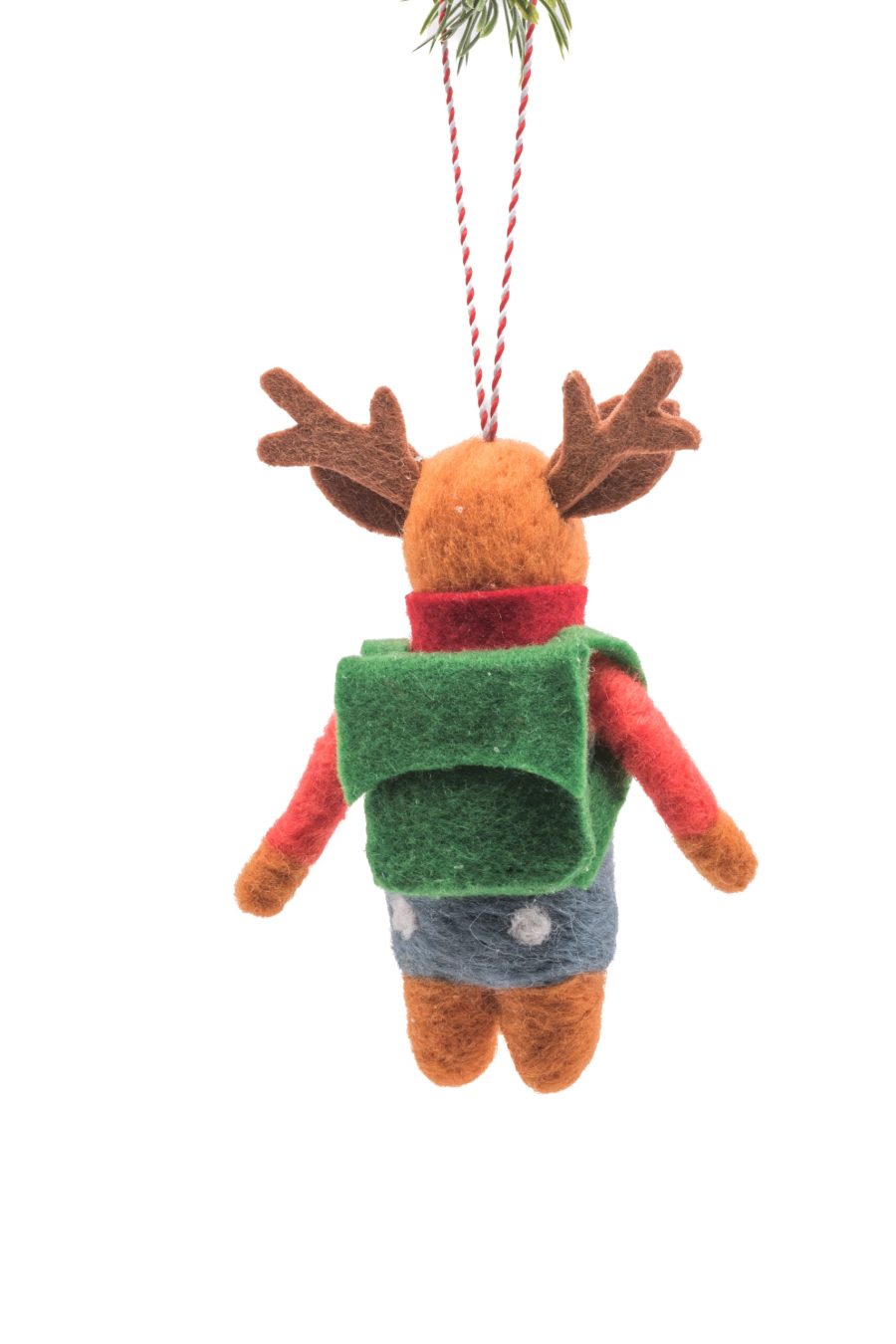 SKU: DK3312Orange/Blue Polylon Hanging Reindeer Ornament with Green Backpack