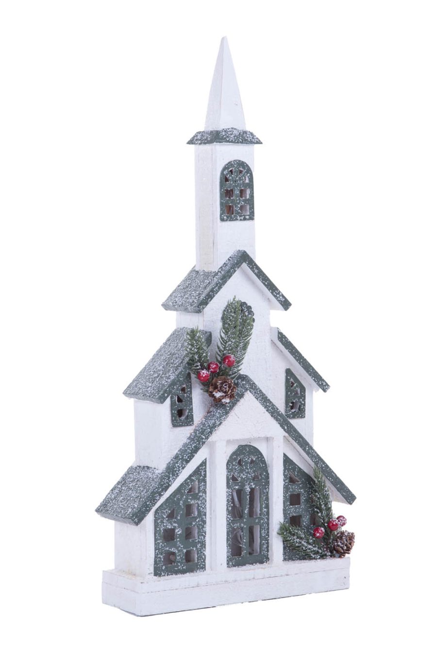 SKU: AF6165White and Green Geometric Wooden Winter Warm White LED Church
