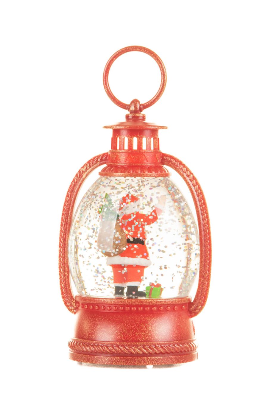SKU: DK4013ARed Santa Lantern Warm White LED Snow Globe with Swirling Glitter