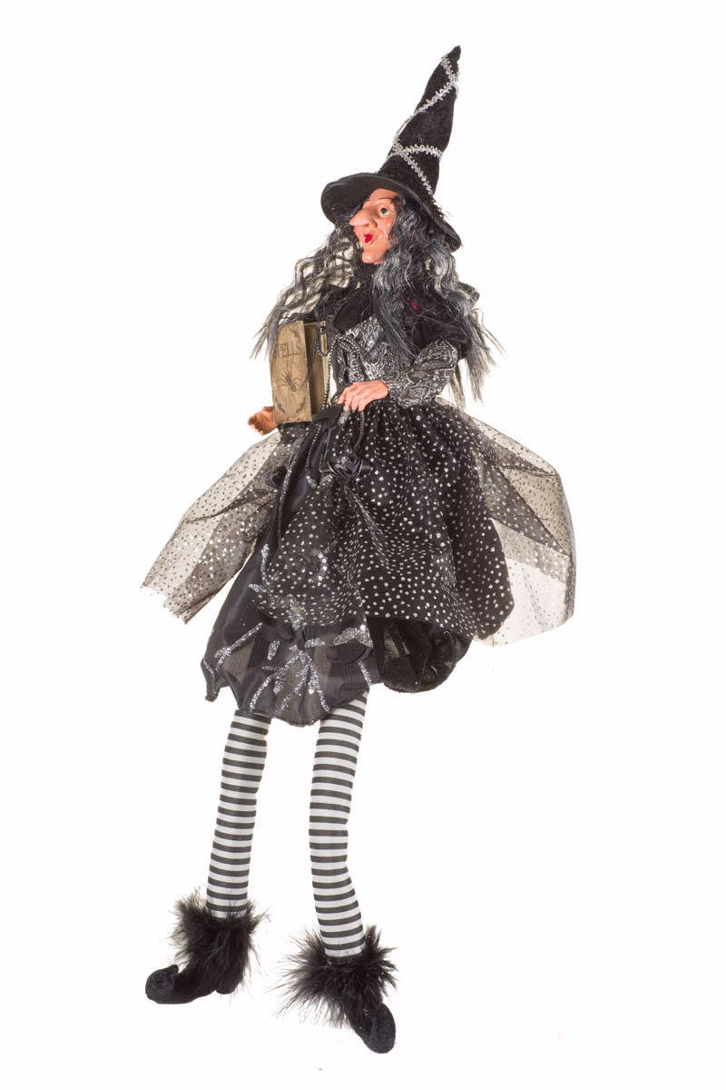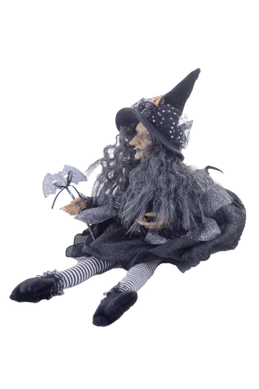 SKU: CL2053Sitting Black Adorable Witch with Striped Dangling Legs and a Bat-Shaped Scepter