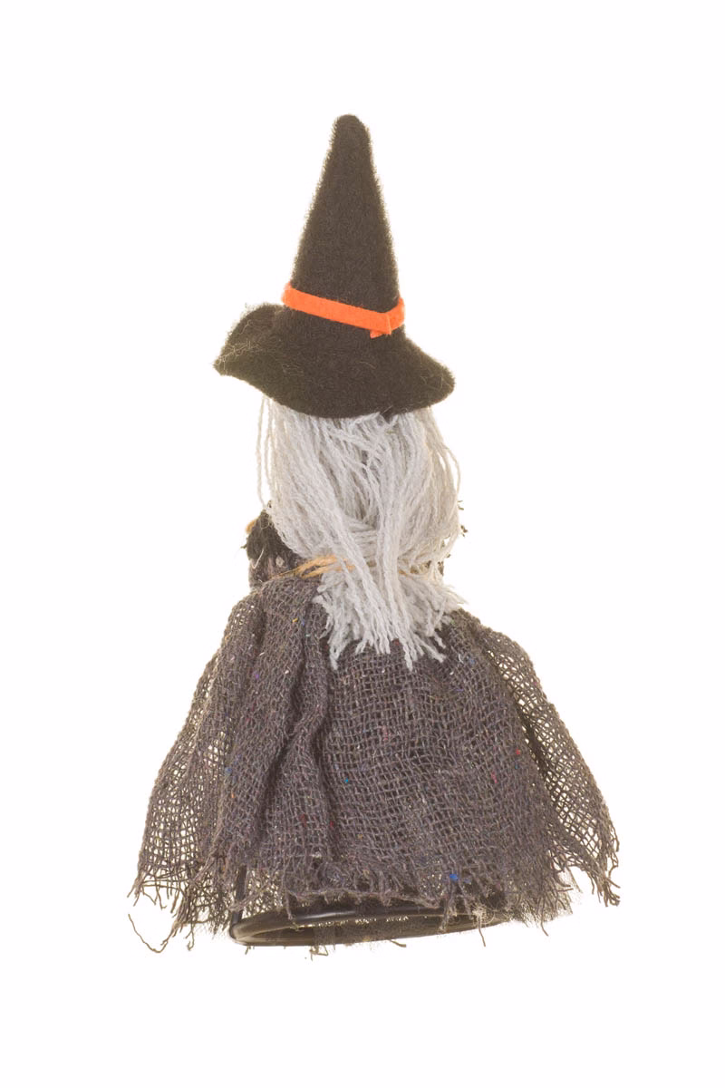 SKU: CL2054Captivating Sitting Orange and Black Witch with a Broom and Black and Gray Hair