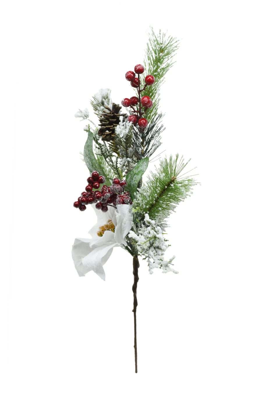 SKU: H9985Green Glittered Mixed Pine Tree Pick with Anemone Flower