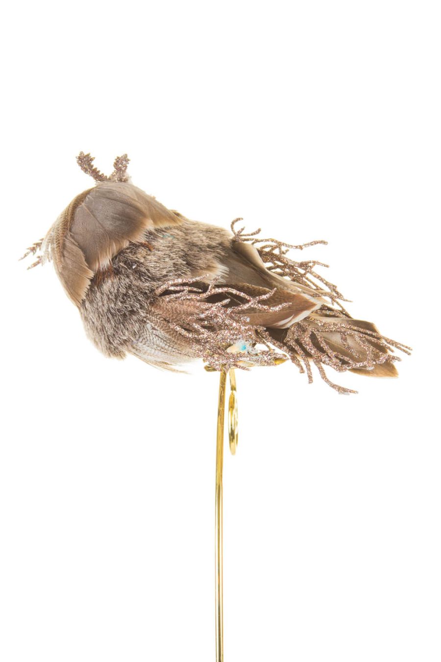 SKU: DK4433Brown Feather Clip-on Bird Ornament with Feathery Tail
