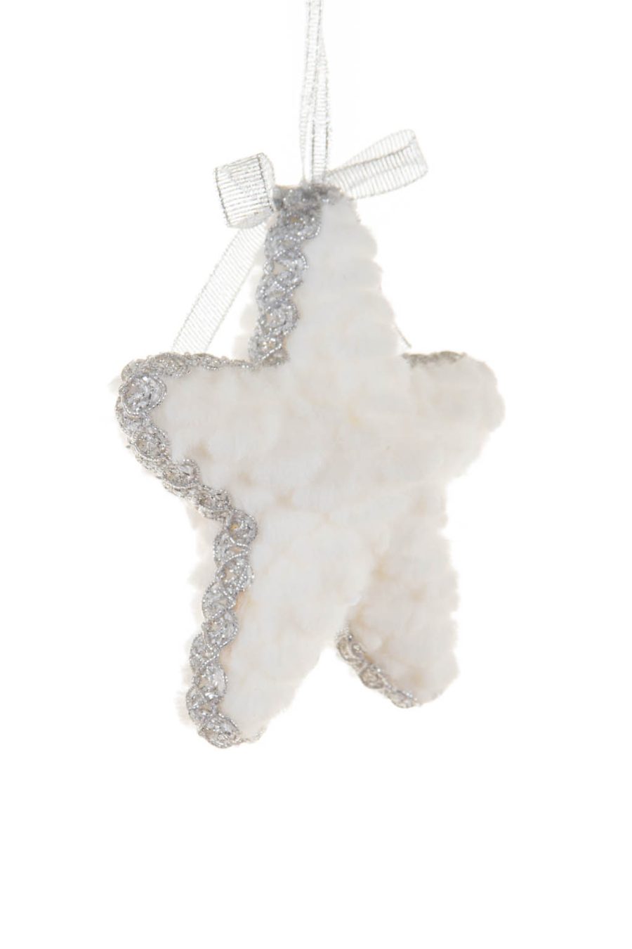 SKU: DK4246BHanging White and Silver Fuzzy Star Ornament with Sparkly Wrapping