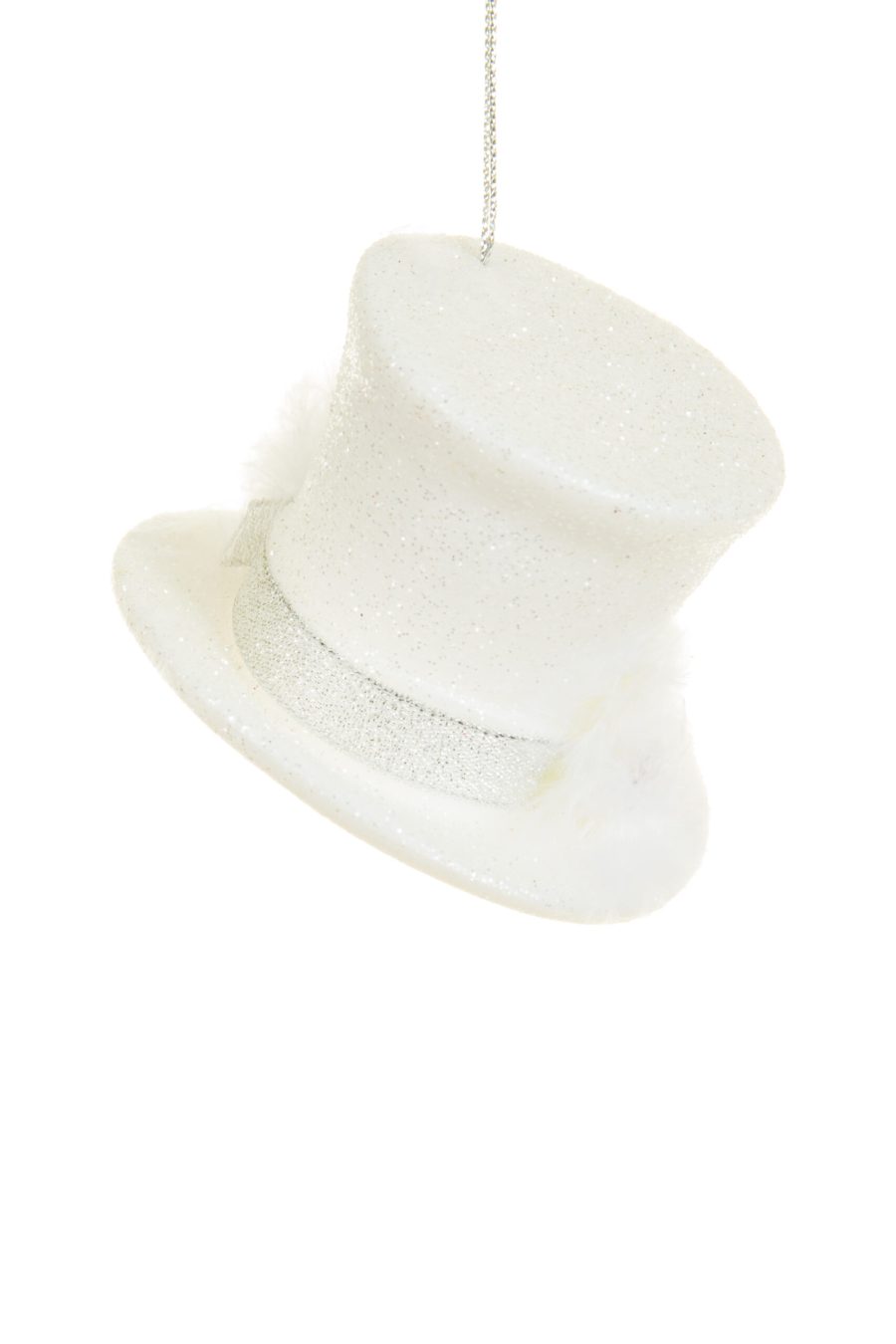 SKU: DK3531WWhite Glittering Top Hat Ornament with Diamond Accent