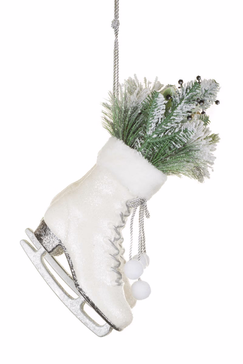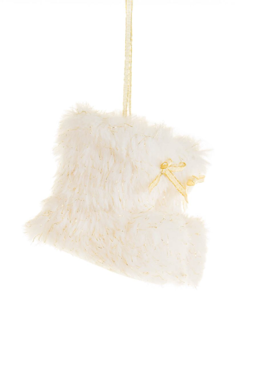 SKU: DK4250AHangable White and Gold Sparkly Sparkling Furry Boots Ornament with Glittery Ribbons
