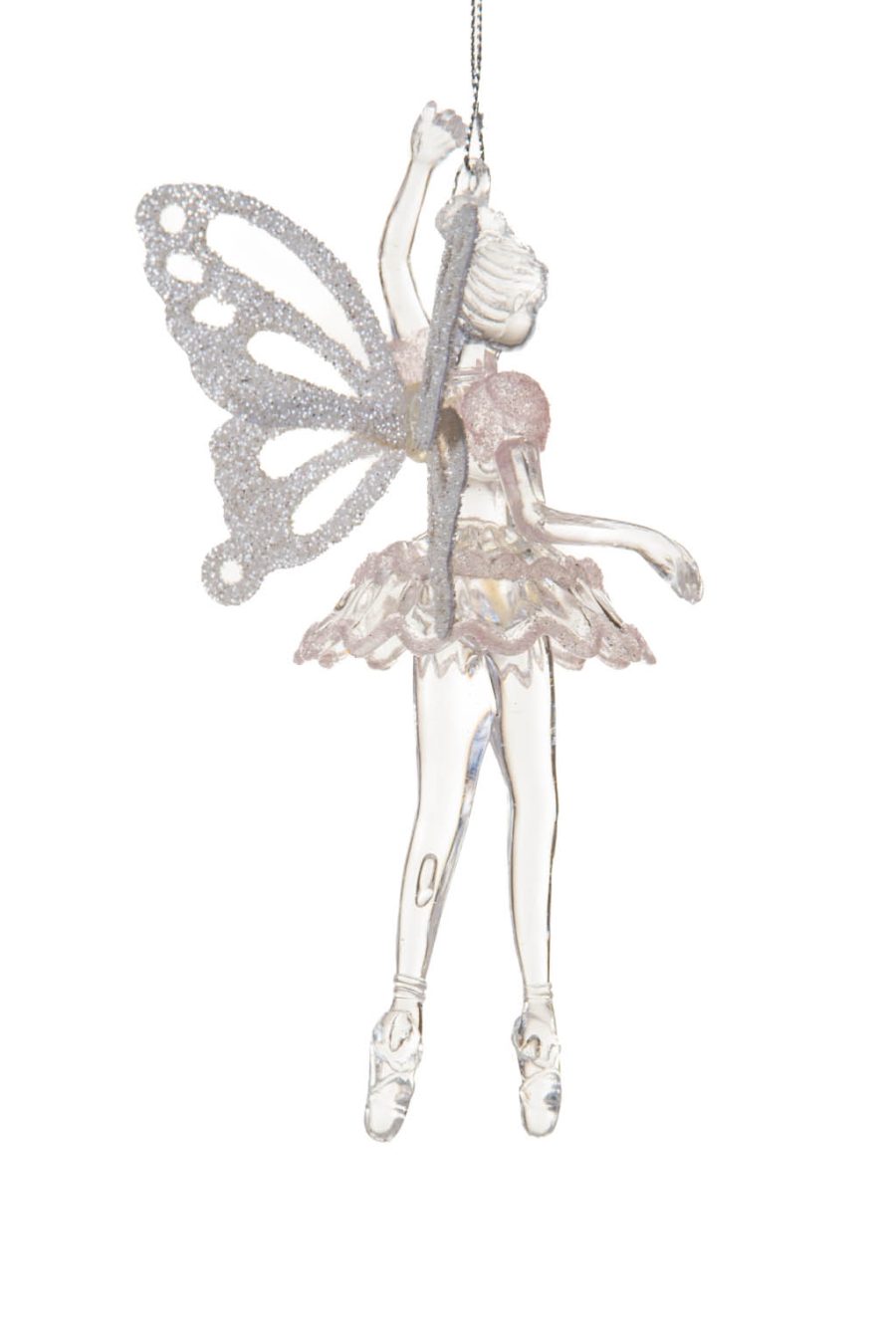 SKU: DK4559Pretty Hangable Clear and White Acrylic Fairy Ballerina Ornament with Glittery Wings