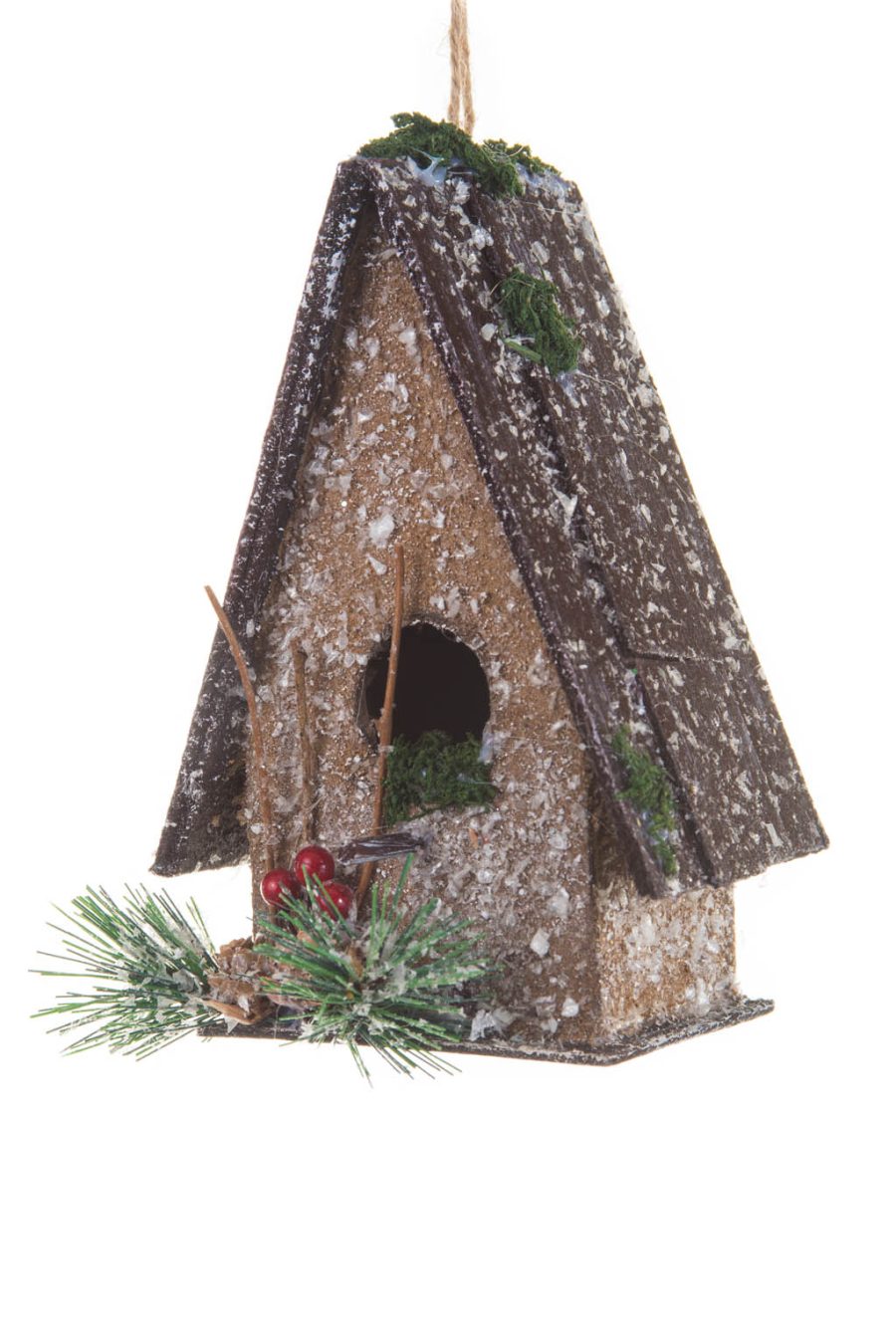 SKU: DK4722Hangable Frosted Brown Mossy Birdhouse Christmas Cabin