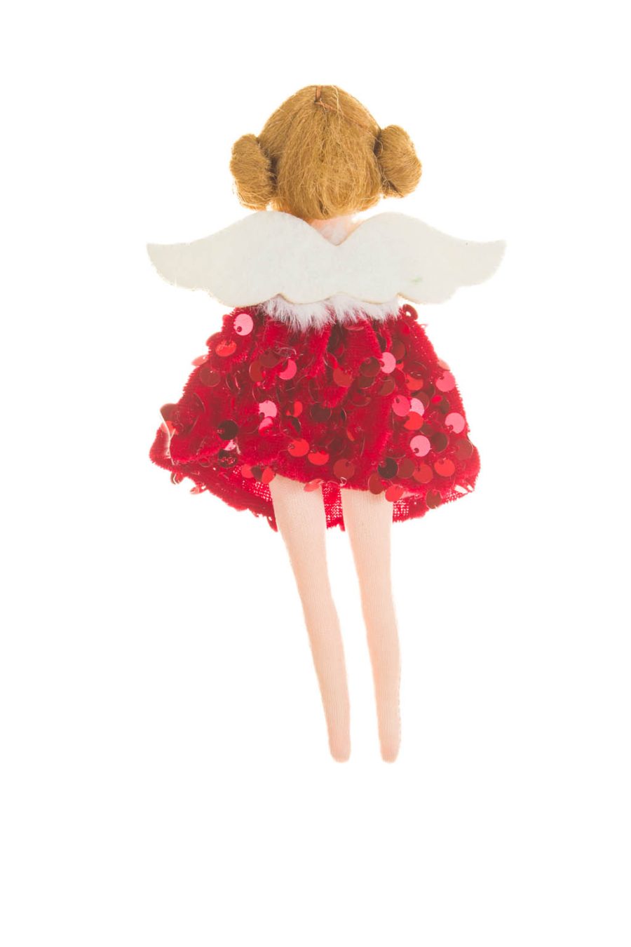SKU: DK4206BHangable Pink and Gold Sequin Cherubic Flying Angel Ornament with Wand and Bunned Up Braids