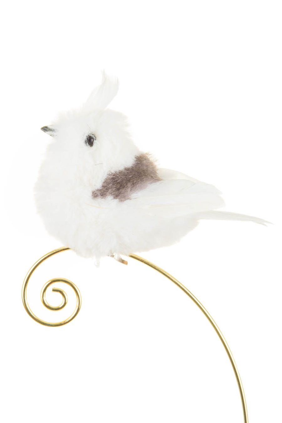 SKU: DK4442Friendly Fluffy White Fabric Clip-on Bird Ornament with Feathered Wings