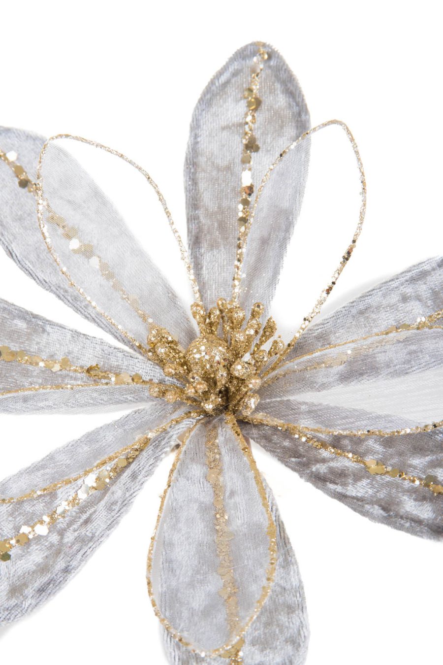 SKU: DK4754Crystaline Gray and Gold Fabric Gardenia Tree Pick with Gold Glitter