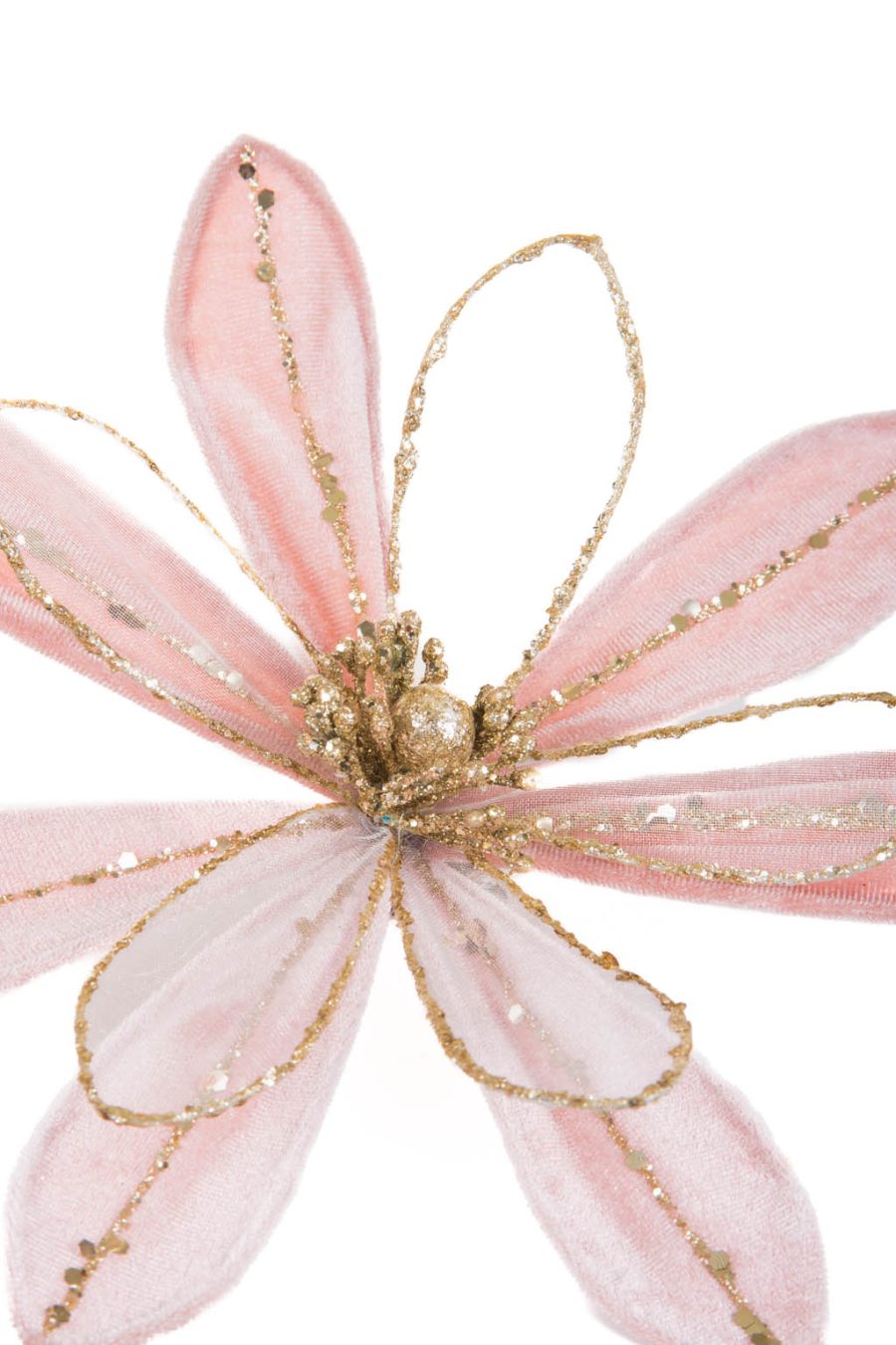SKU: DK4755PCrystaline Pink Fabric Poinsettia Tree Pick with Gold Glitter
