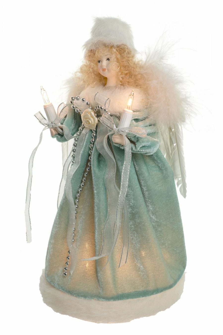 White Small 10-Light Angel Tree topper with Blonde Hair