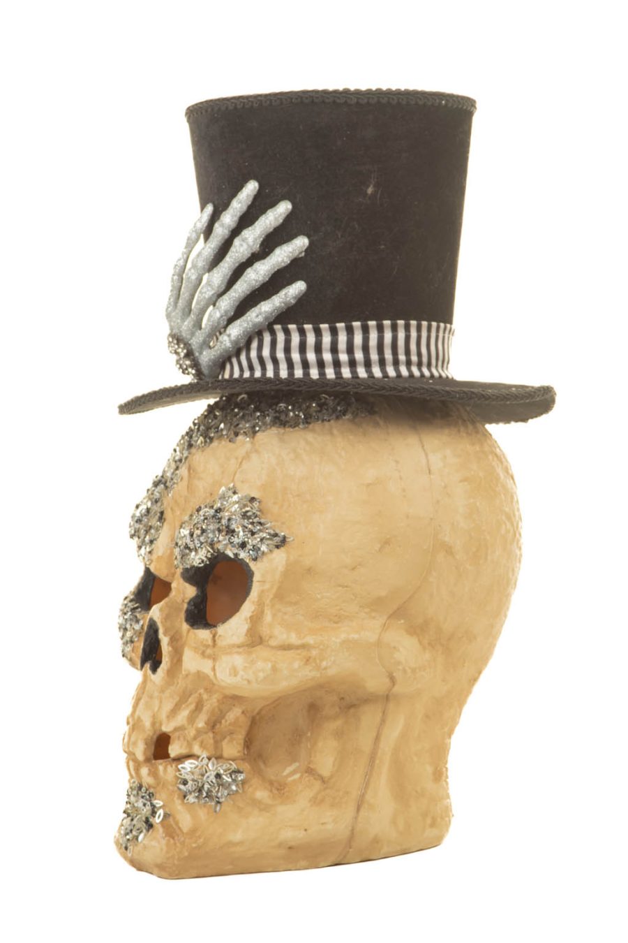 Sitting Beige and Black Sequin Glamorous Skull with Slick Tophat