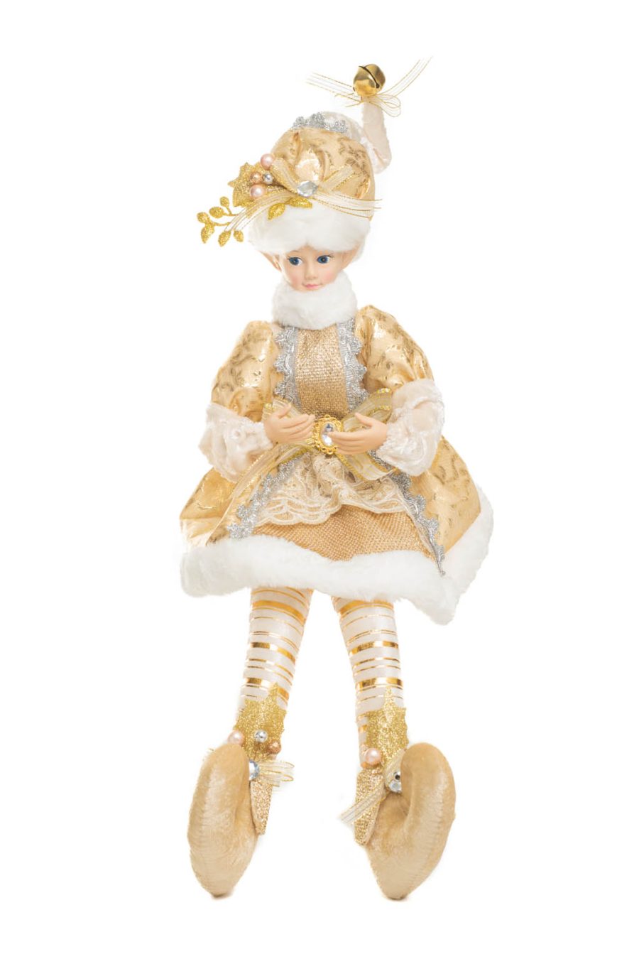 Sitting Gold and White Elizabethan Elf with Spray on Beanie