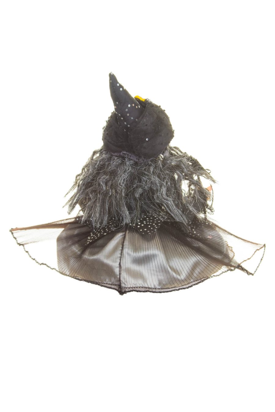 Black and Orange Sequin Decadent Witch with Cradled Cat and Broomstick