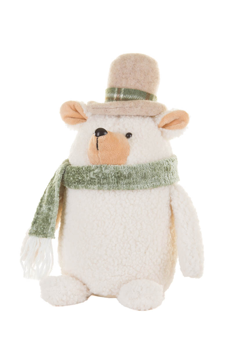 Sitting White Plaid Wrapped Top Hat Teddy Bear
