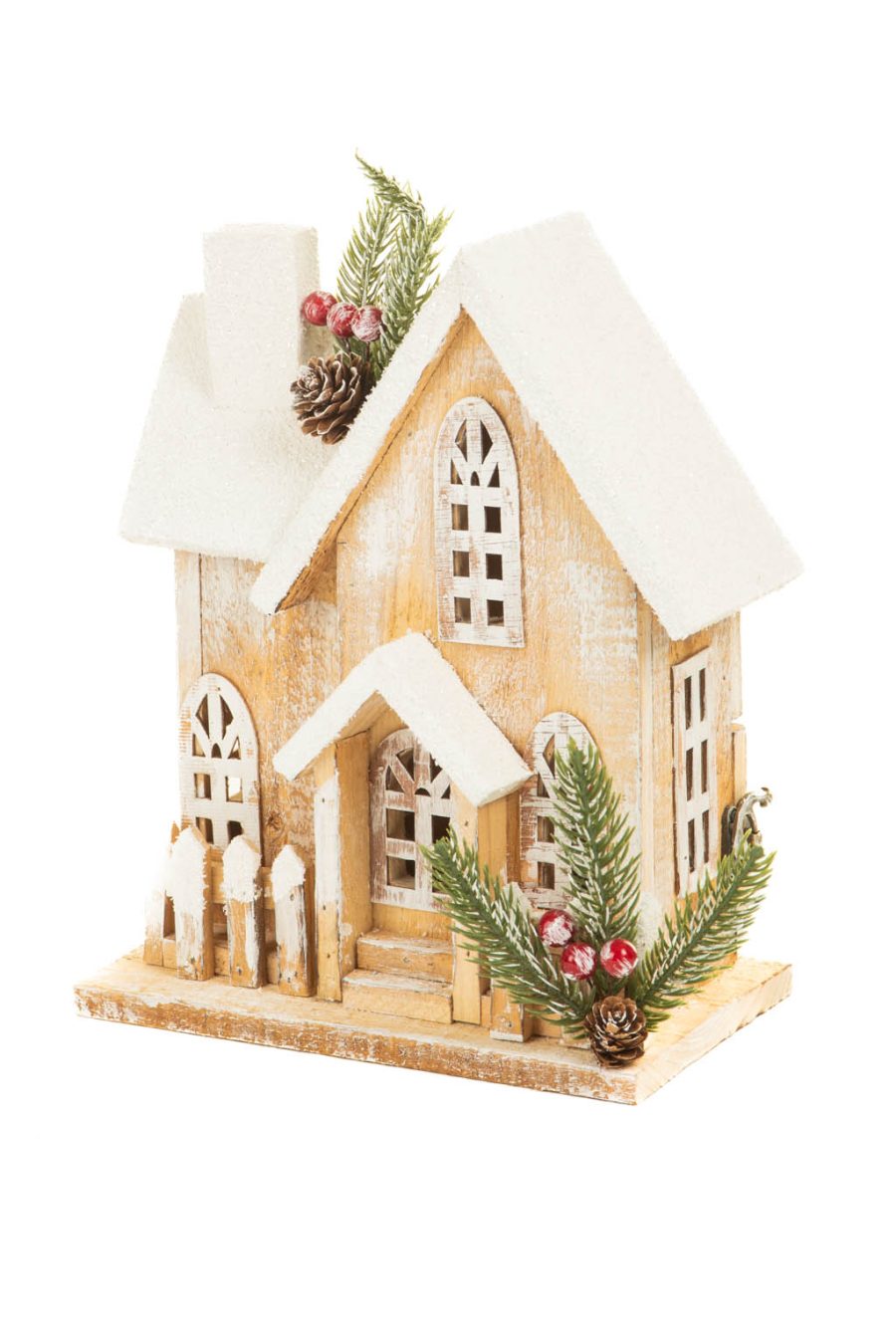 White and Light Brown Wooden Snowy Warm White LED Cabin