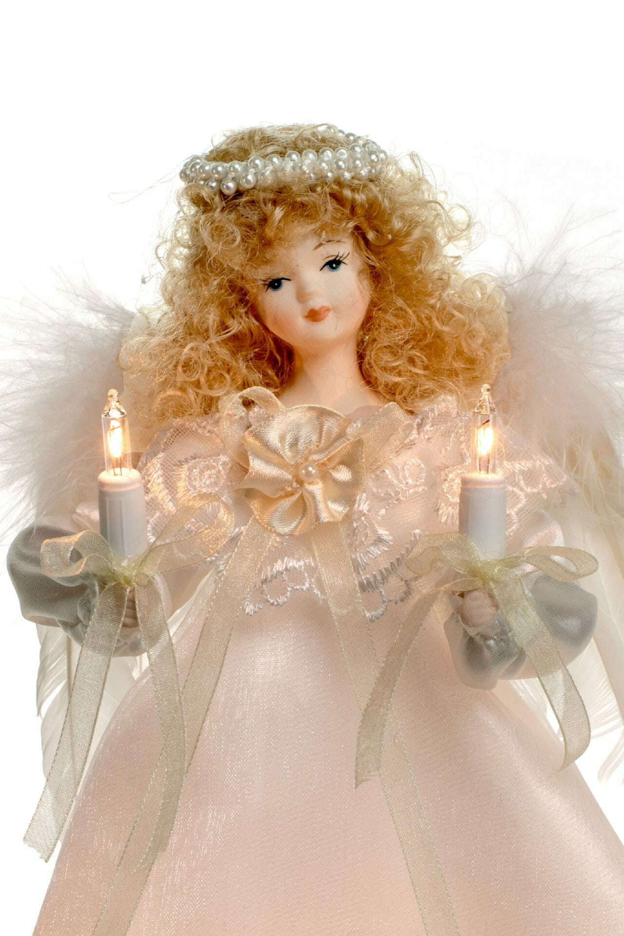And with that homey feeling that you only get with Cloth, you’ll be sure to enjoy your elegant Small Angel Tree topper with Blonde Curly Hair with your family for years to come.