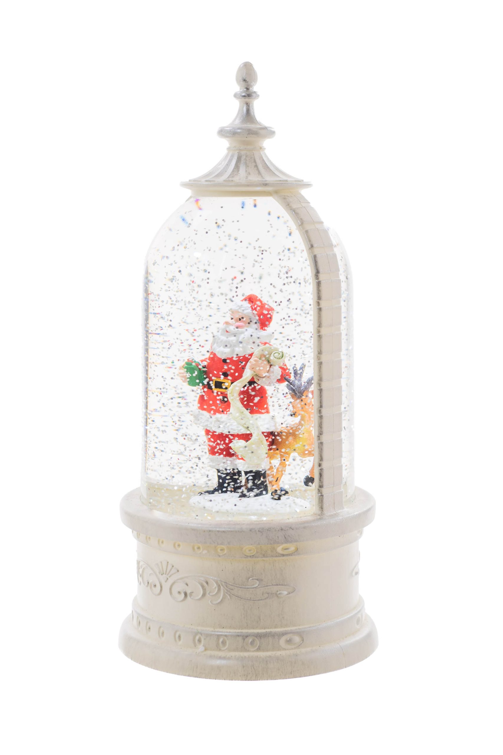 White Lantern Snow Globe with Santa and his Friends