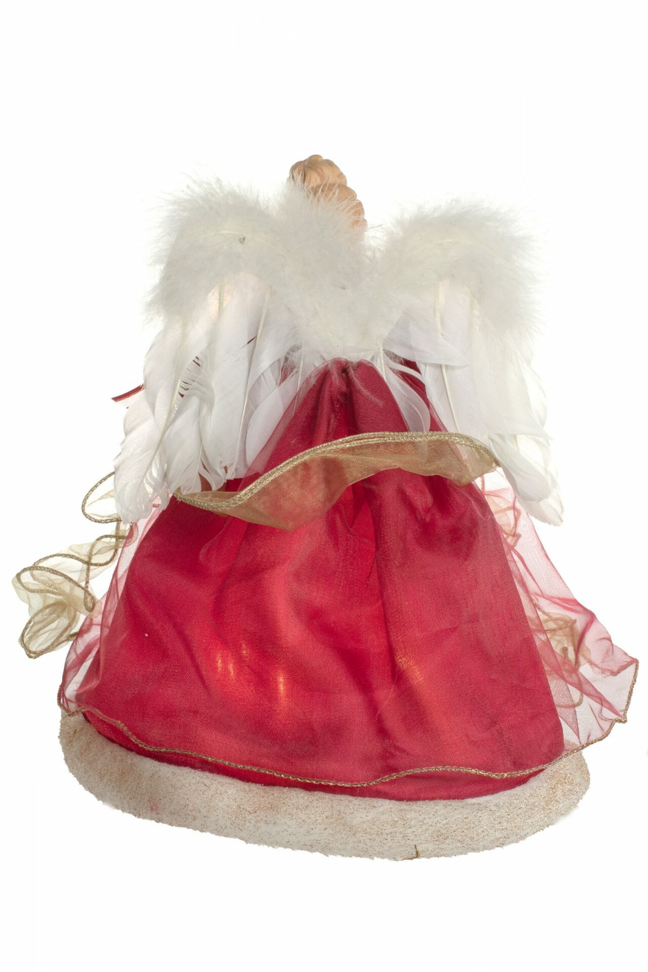 This warm, bright Angel has a beautiful Red And Gold Gown sure to charm with its rustic style.