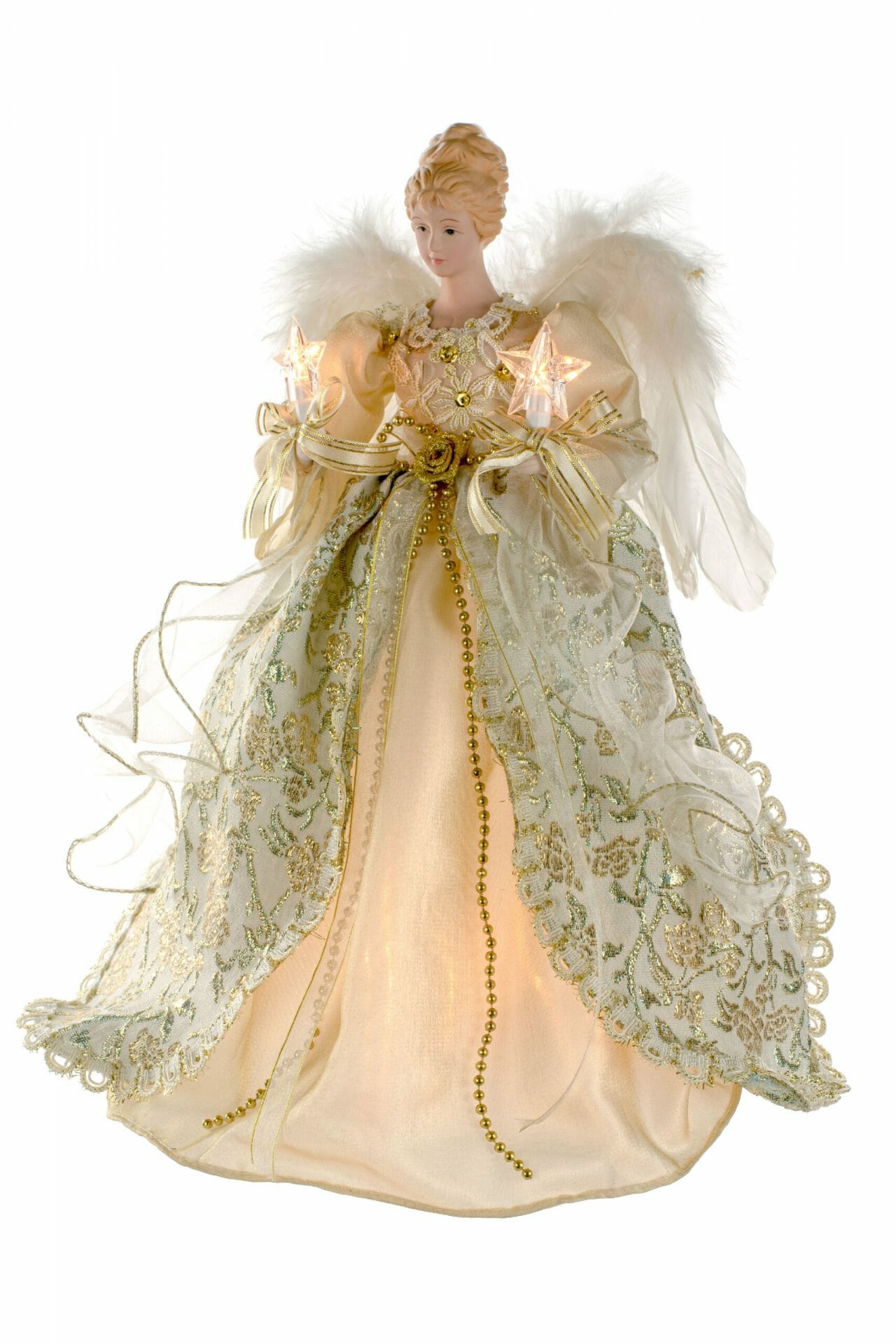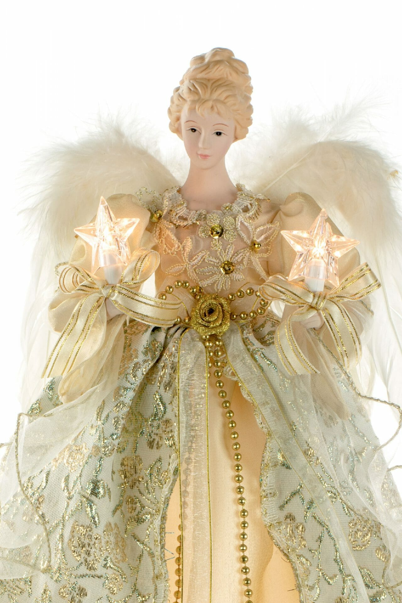At the top of every Christmas tree is bright and shining star representing the delicate and precious guardian angel who watches over you and your family night after night during the holiday season. Starlight Tree Toppers serve as a beautiful reminder of the vintage Angel Tree Topper that you can find in all your old family photos. They bring a classic Victorian touch to produce an elegant Angel Tree Topper with the most beautiful face on the market. This adorable keepsake is an heirloom piece that can be passed down from generation to generation every holiday season. Allow the light from her stars grace your living room as she sits atop of your tree to watch over your family as we bring in the new year.