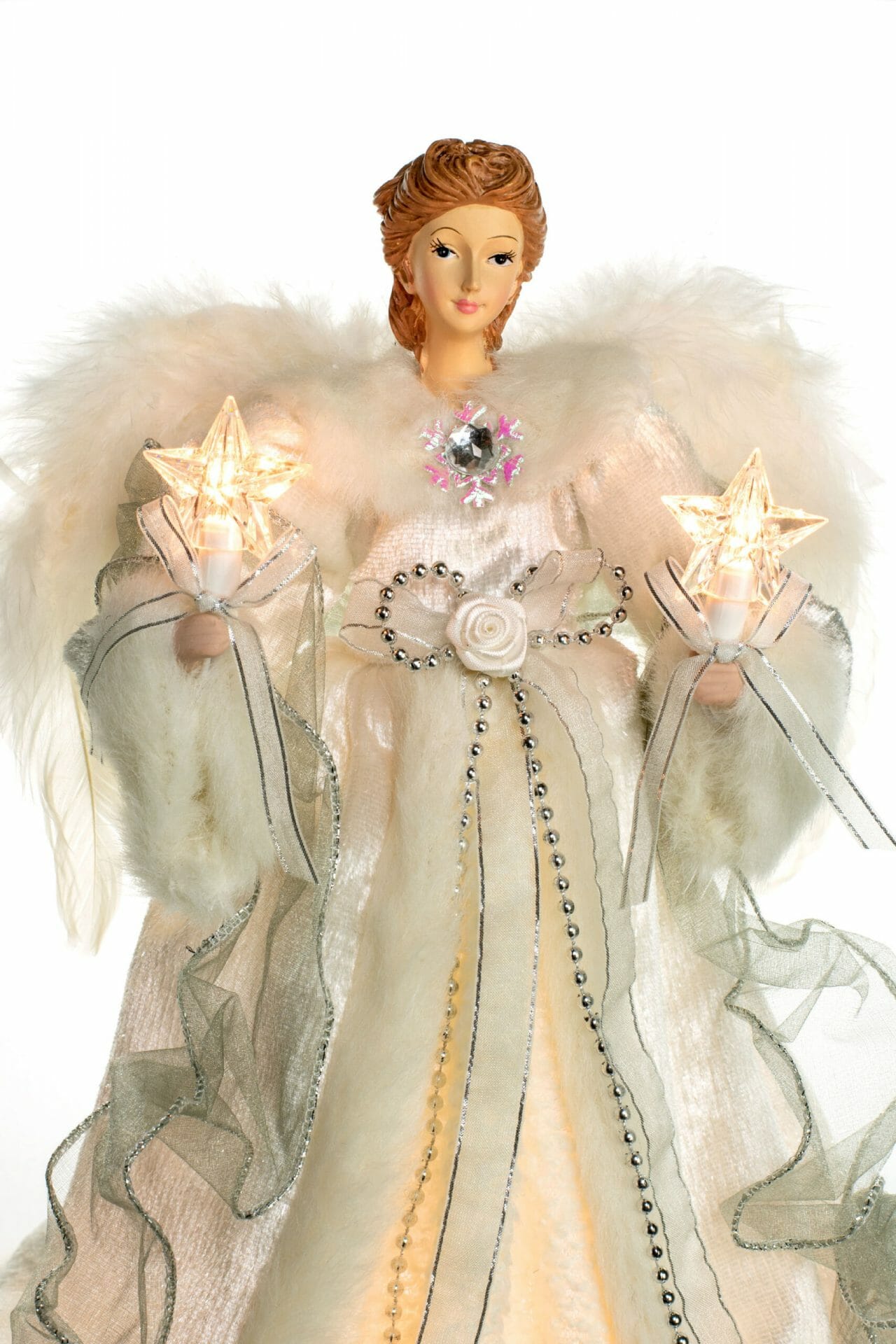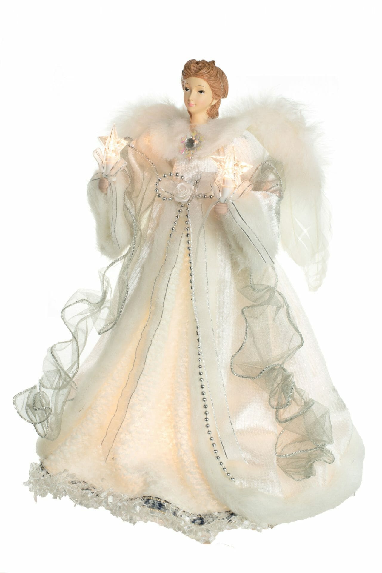 This pure, solemn Angel has a beautiful Ivory Gown sure to complete your tree with its classic splendor and pure aesthetic.