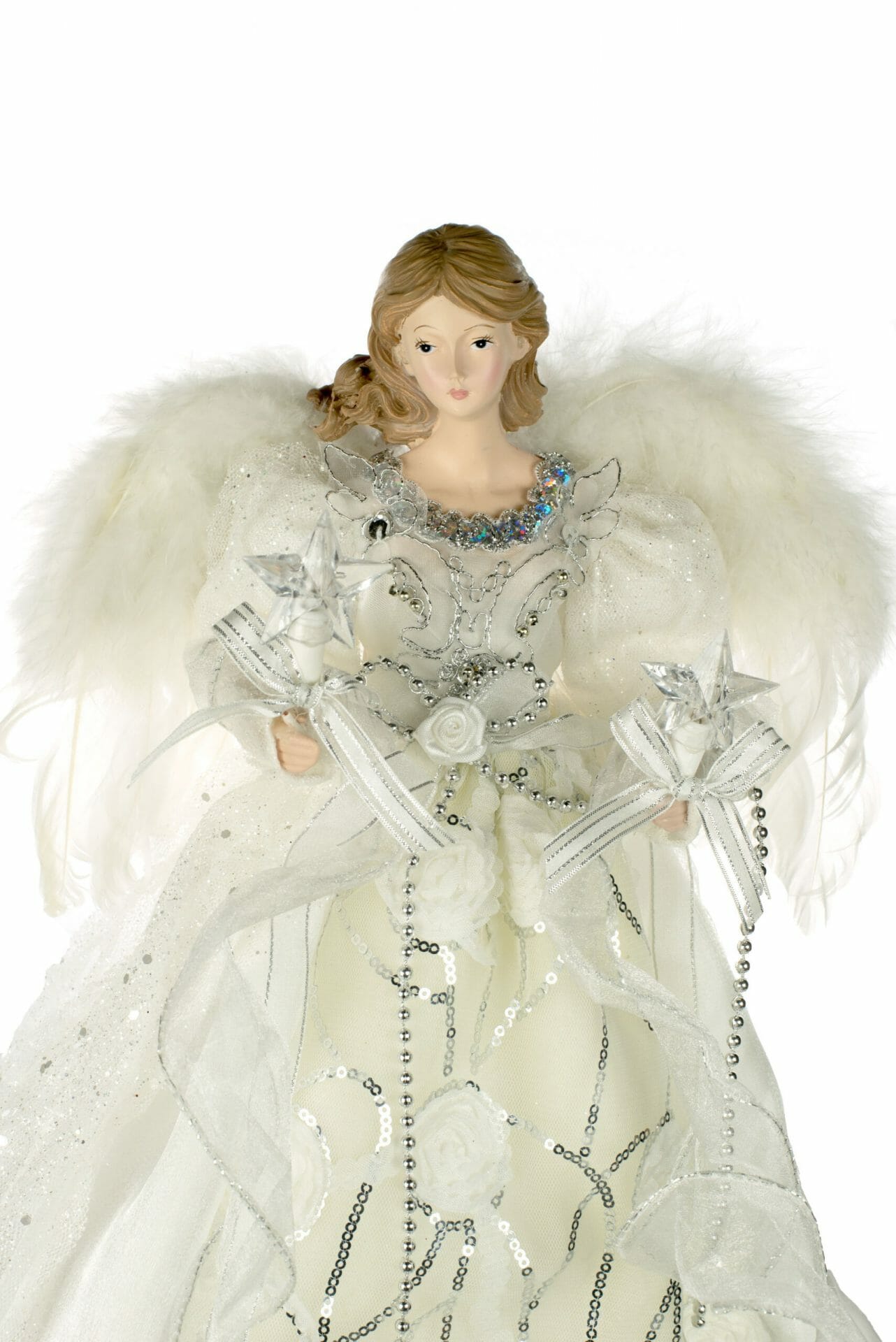 This pure, solemn Angel has a beautiful White And Silver Gown sure to inspire with its modern styling.