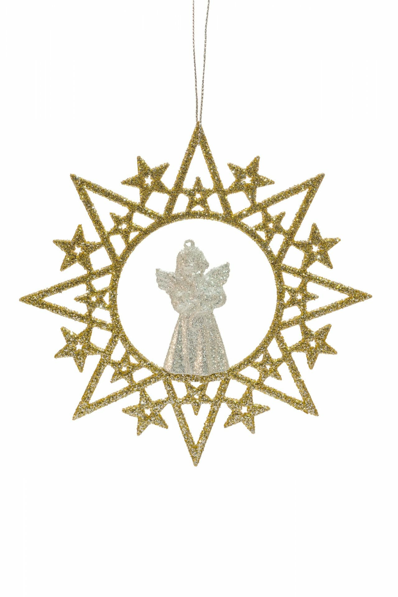 Built with modern materials and sensibilities, you’re sure to enjoy your new Glittery Star Wreath Ornament with Angel year after year as it hangs proudly on your family’s tree.