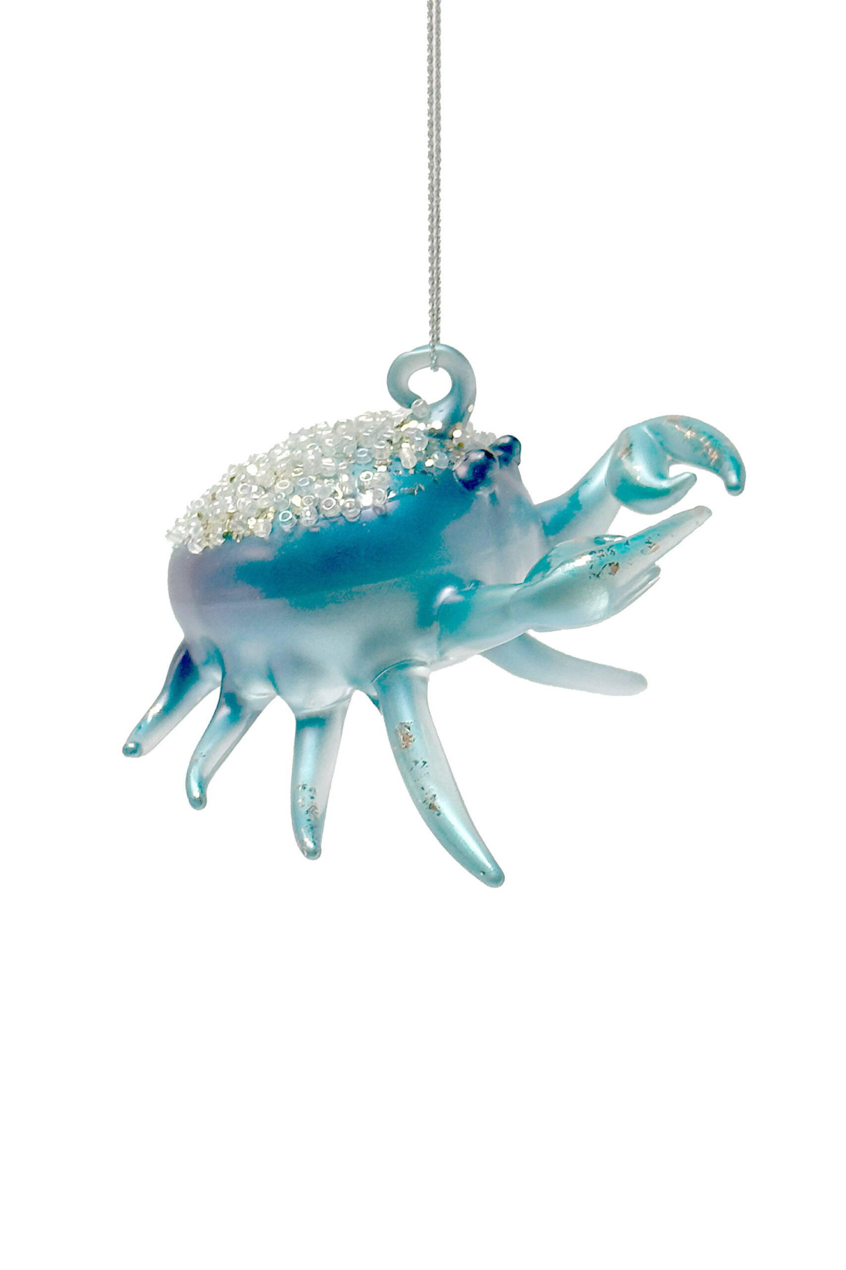 Blue Glass Hanging Crab Ornament with Pearls