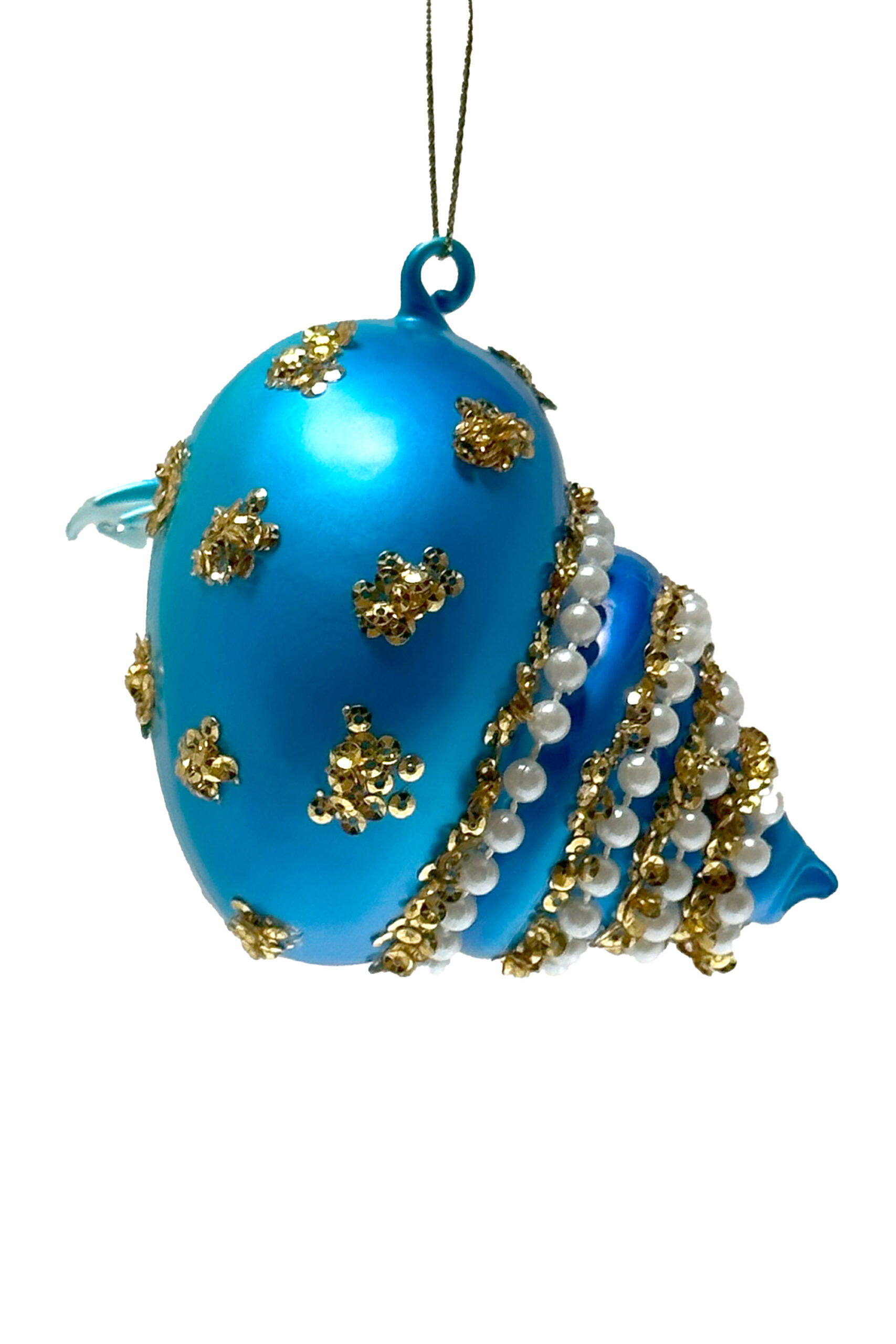 Blue Glass Hanging Snail Ornament with Pearls