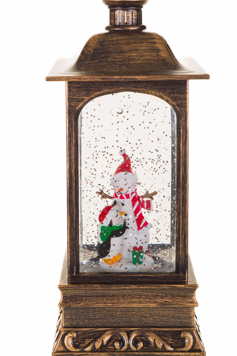 Since the late 19th century, Snow Globes have been bringing cheer and joy to the young and young of heart. This year, why not add to your collection with our LED Lantern Snow Globe with Snowman & Penguin? It will fit in any home with its Bronze Frame, frosty theming and traditional feel.