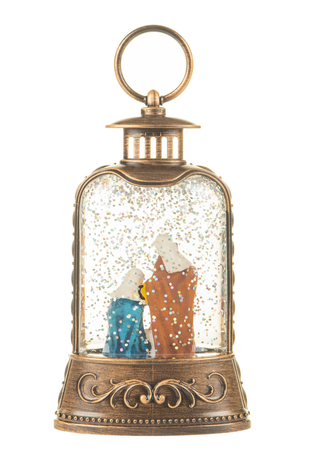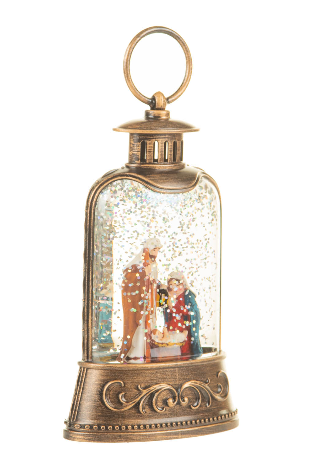 Bronze Nativity Lantern Warm White LED Snow Globe with Swirling Glitter