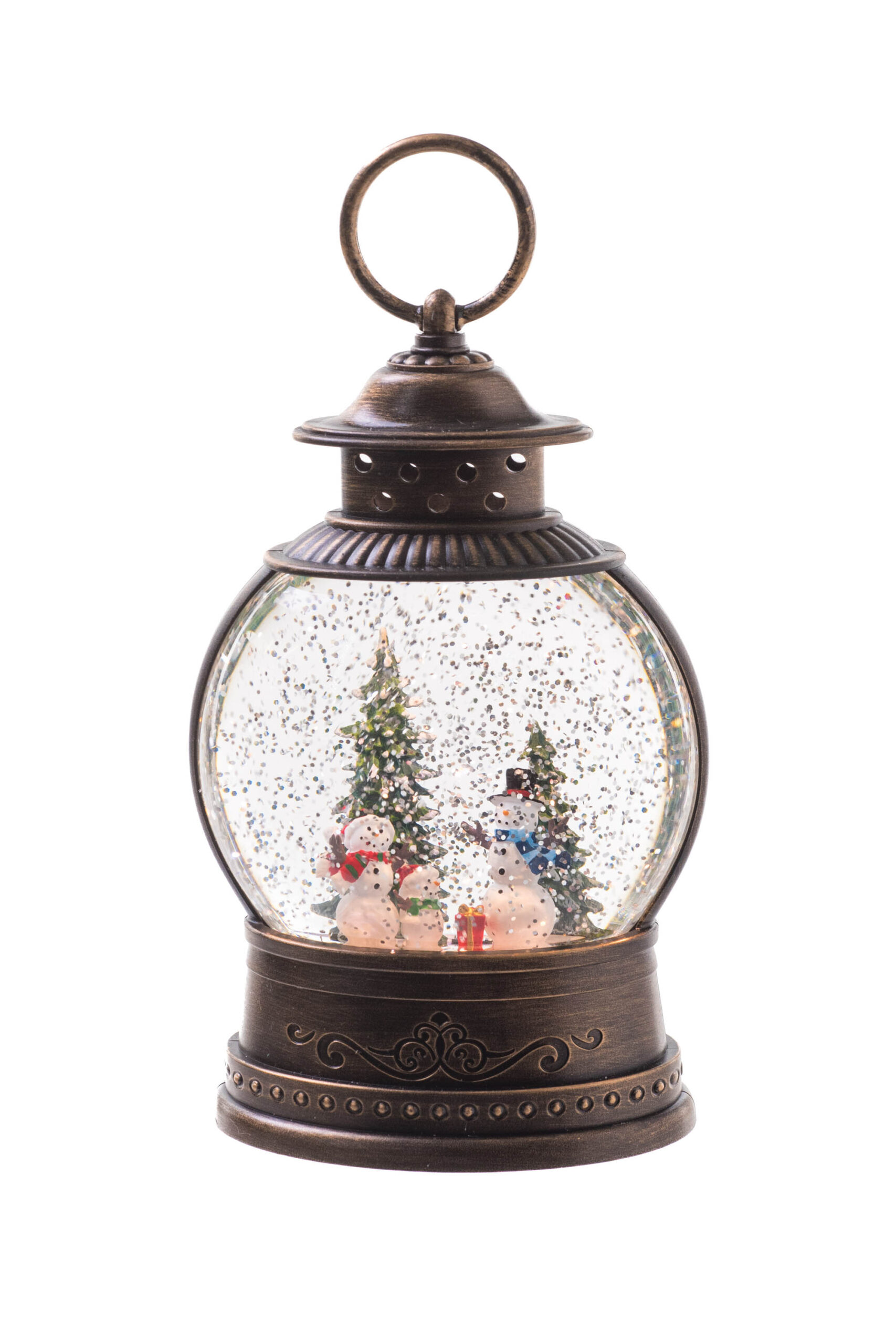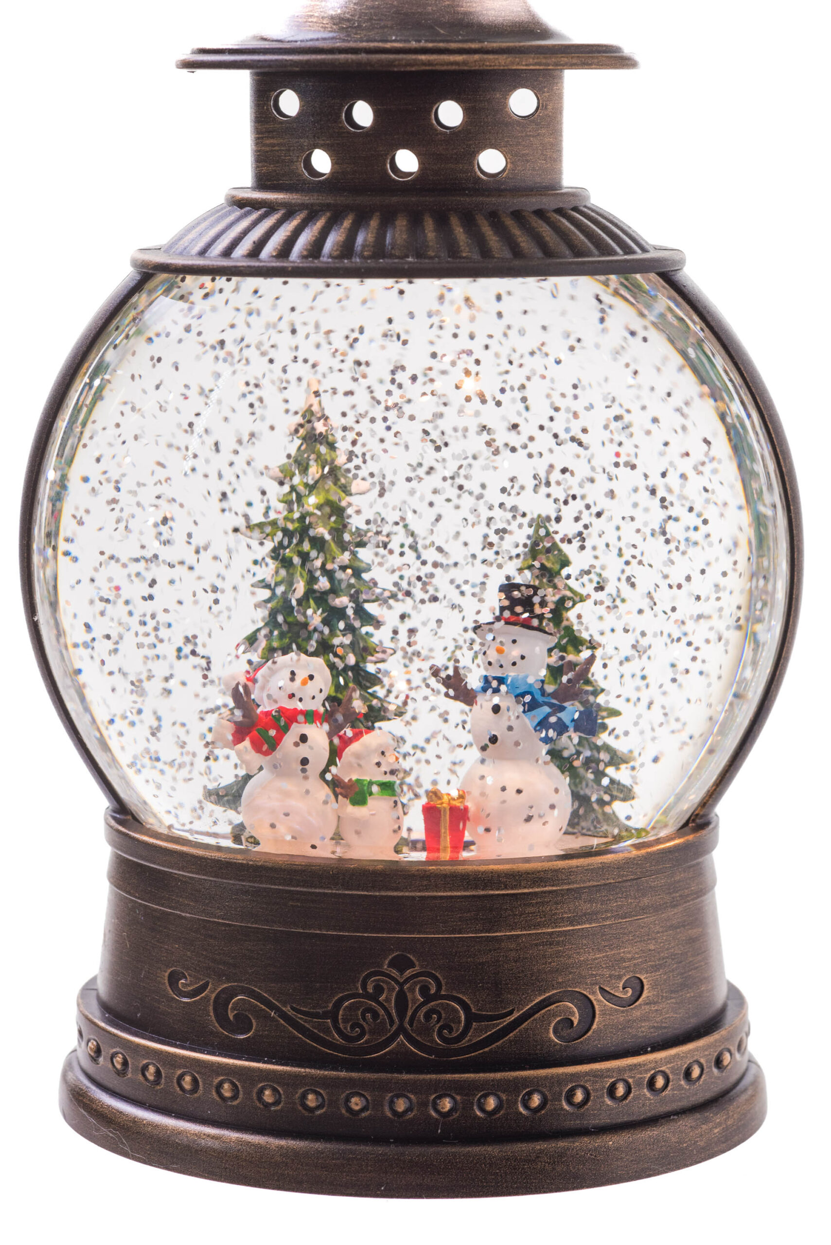 Brown Antique Oval Lantern LED Snow Globe with Snowman-Scape