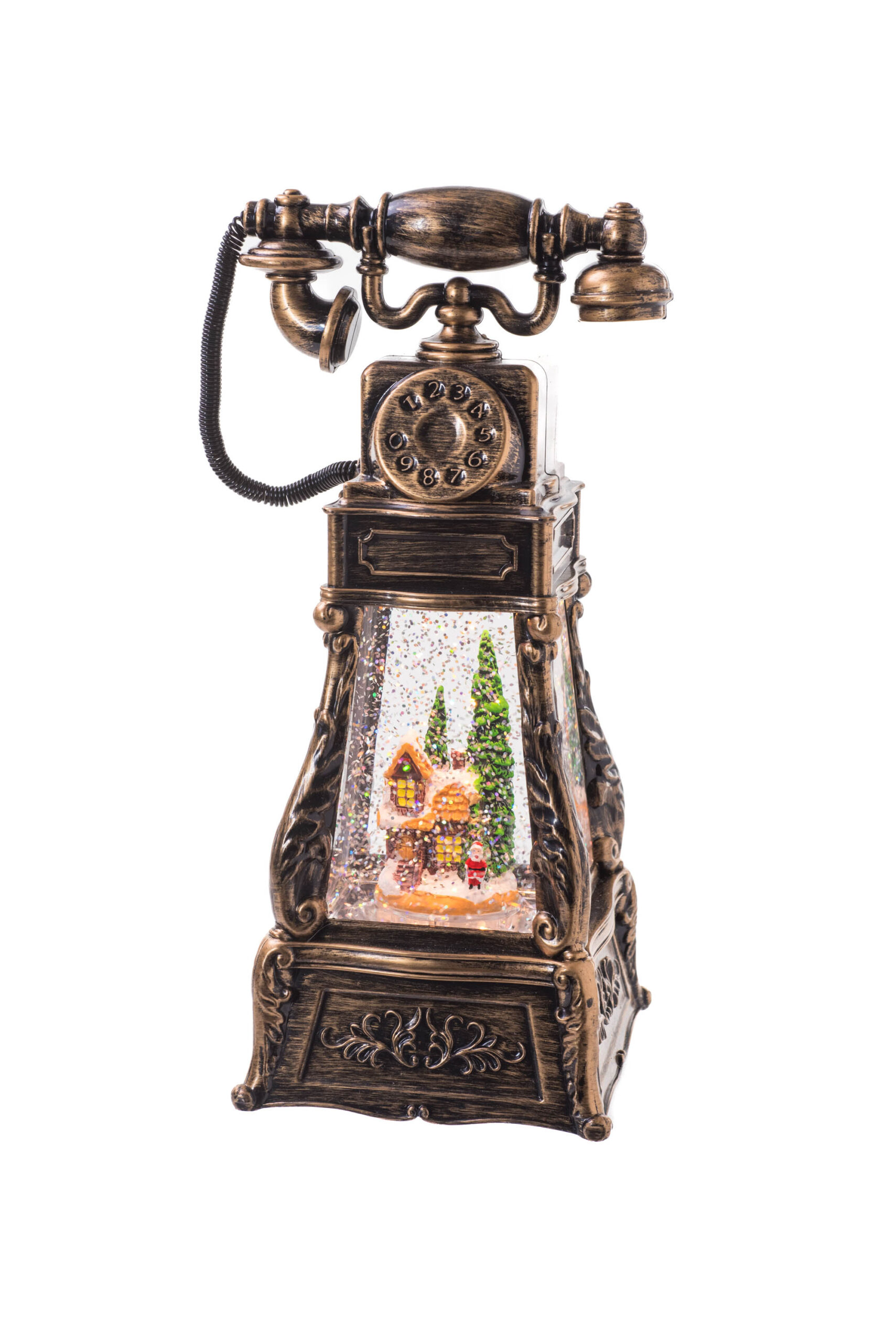 Brown Antique Phone LED Snow Globe with Christmas Village Figurine