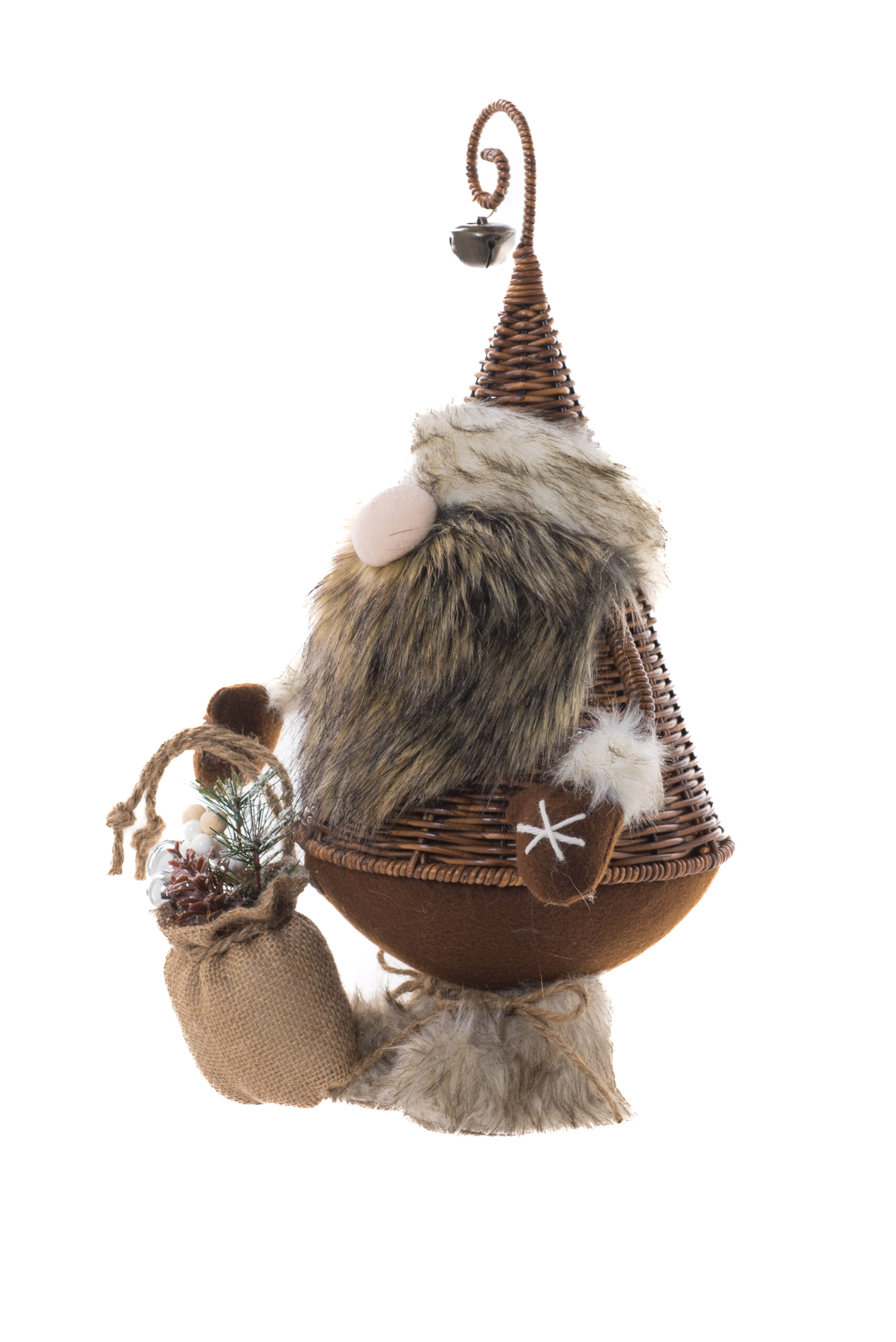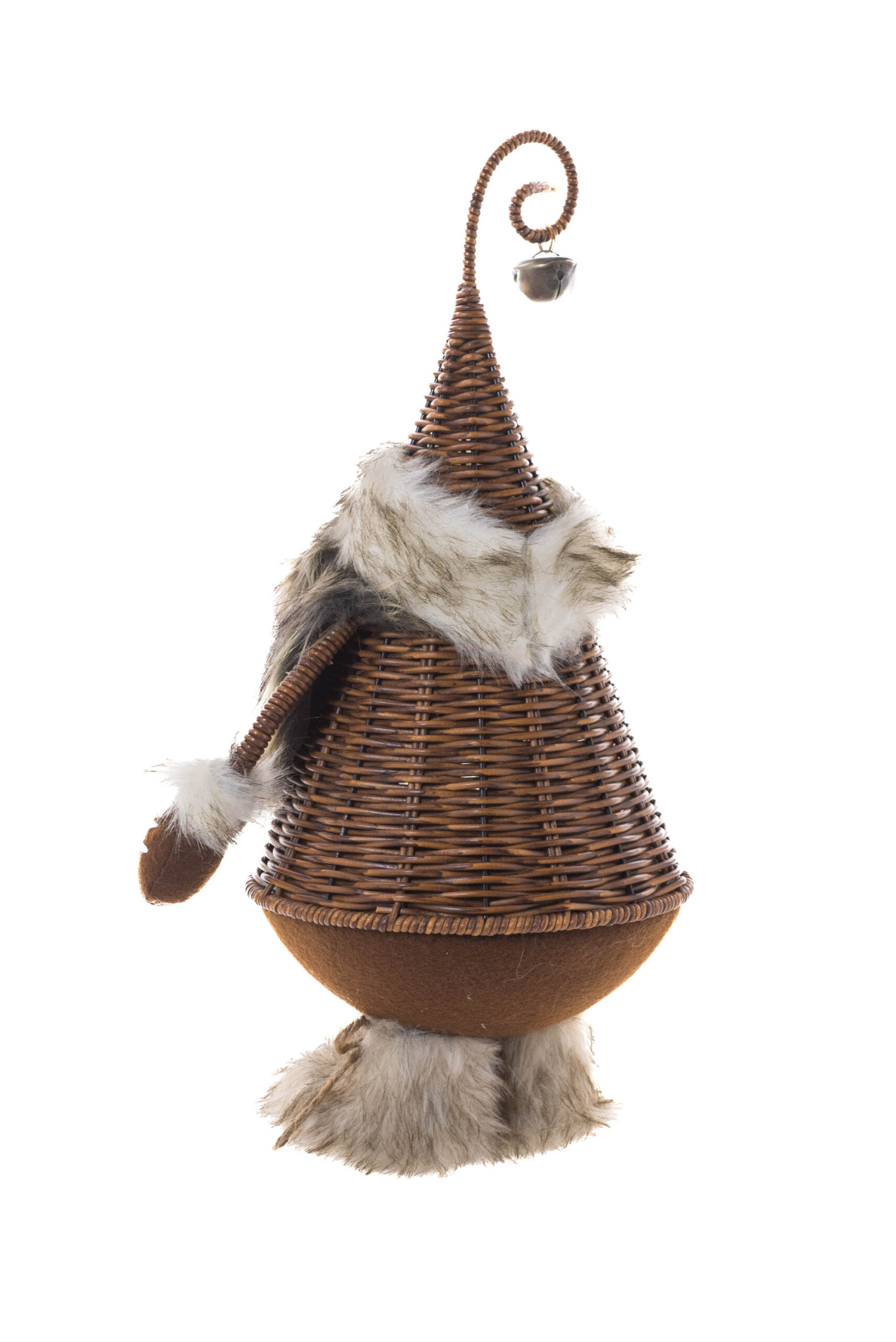 Brown/Grey Wicker Standing Cone-Shaped Gnome Santa