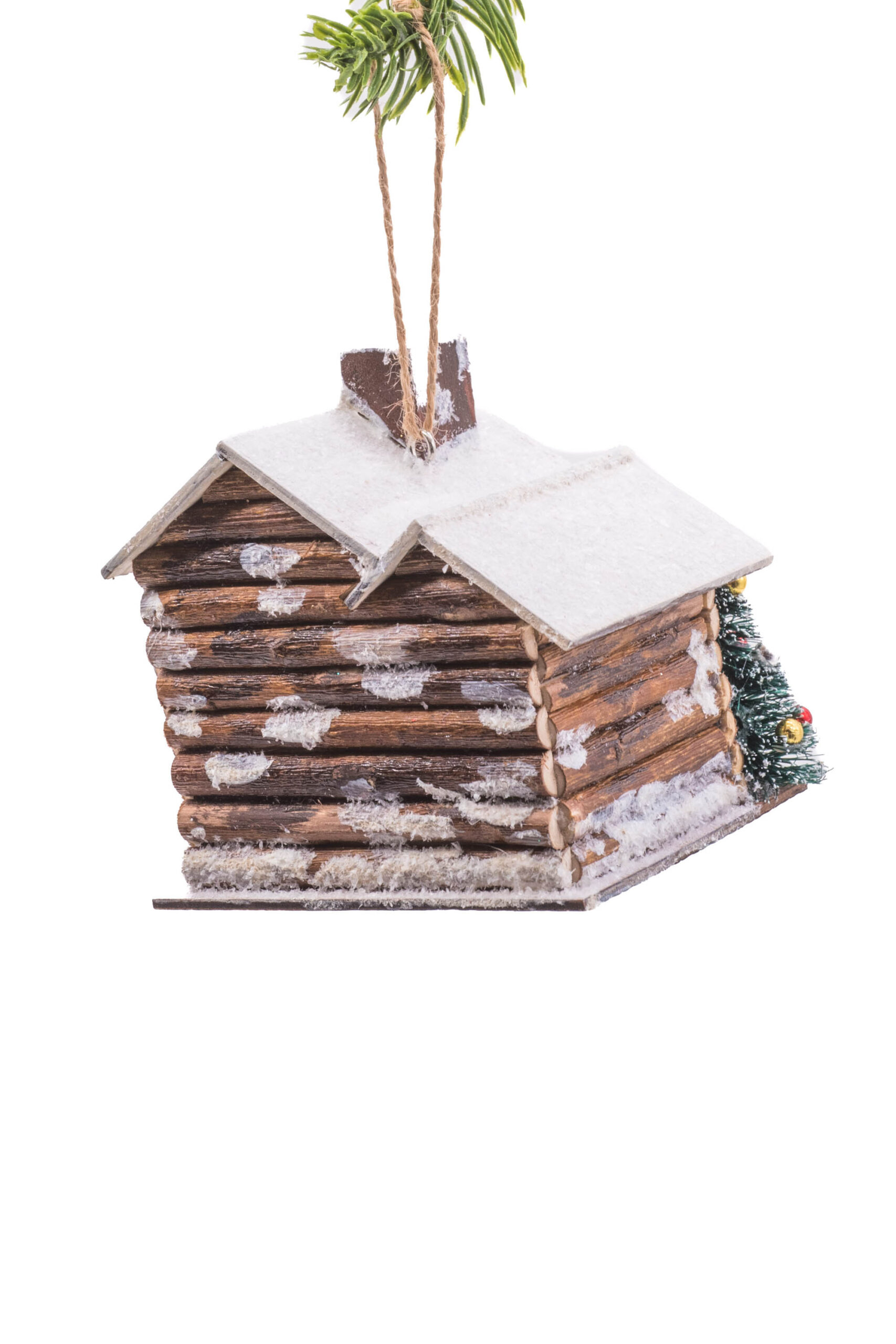 Brown/White Mdf Hanging Cabin Lighted Ornament