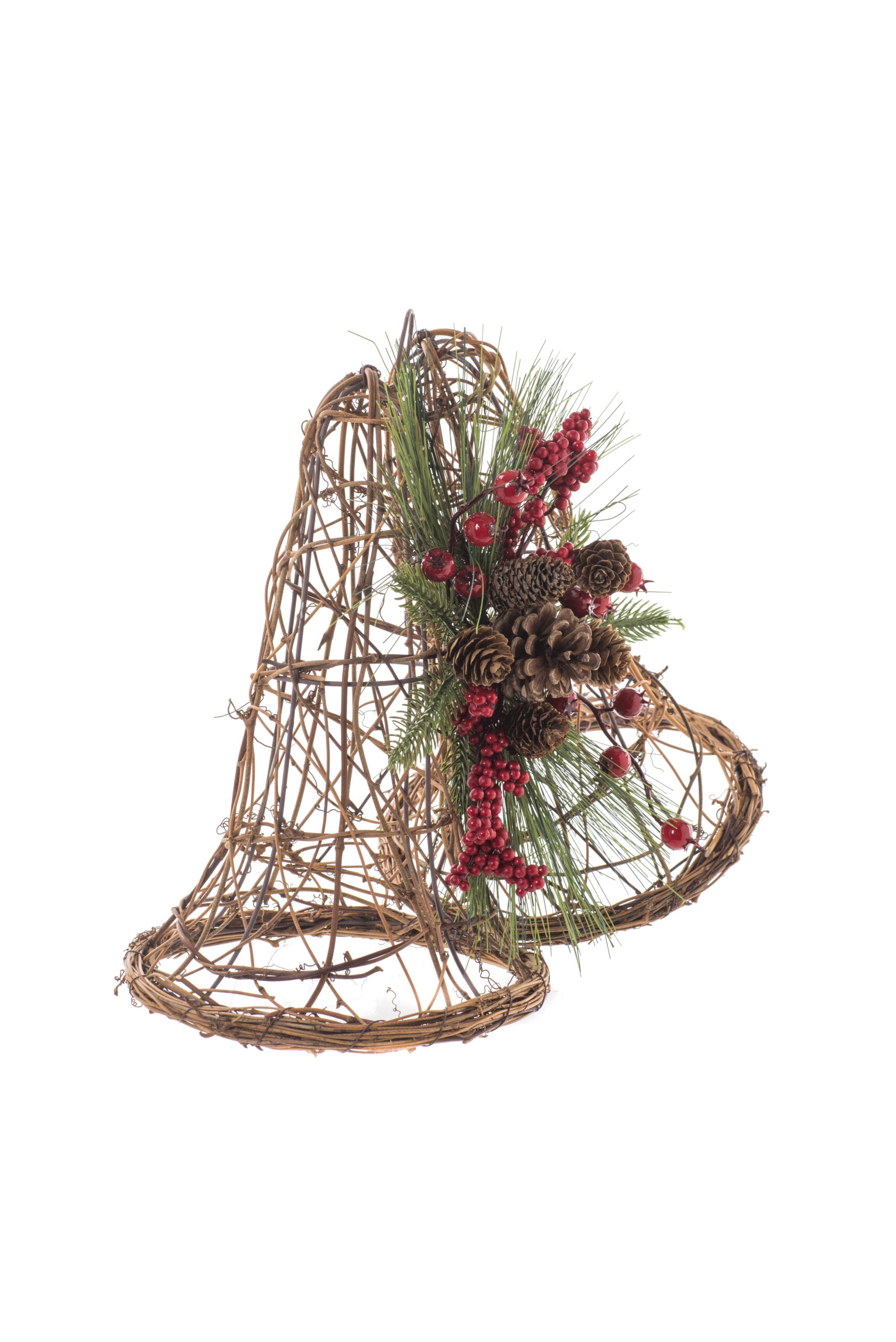 Brown Wood Hangable Wireframe Bells with Berry Spray