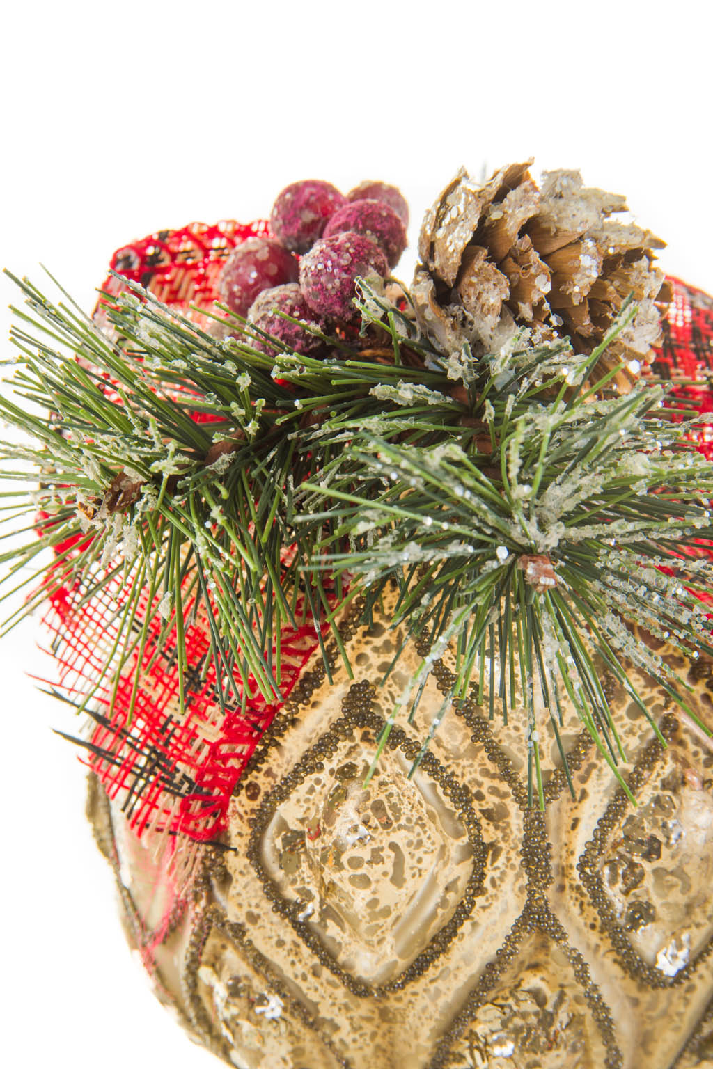 Captivating Hangable Brass Baubles with Plaid Ribbon