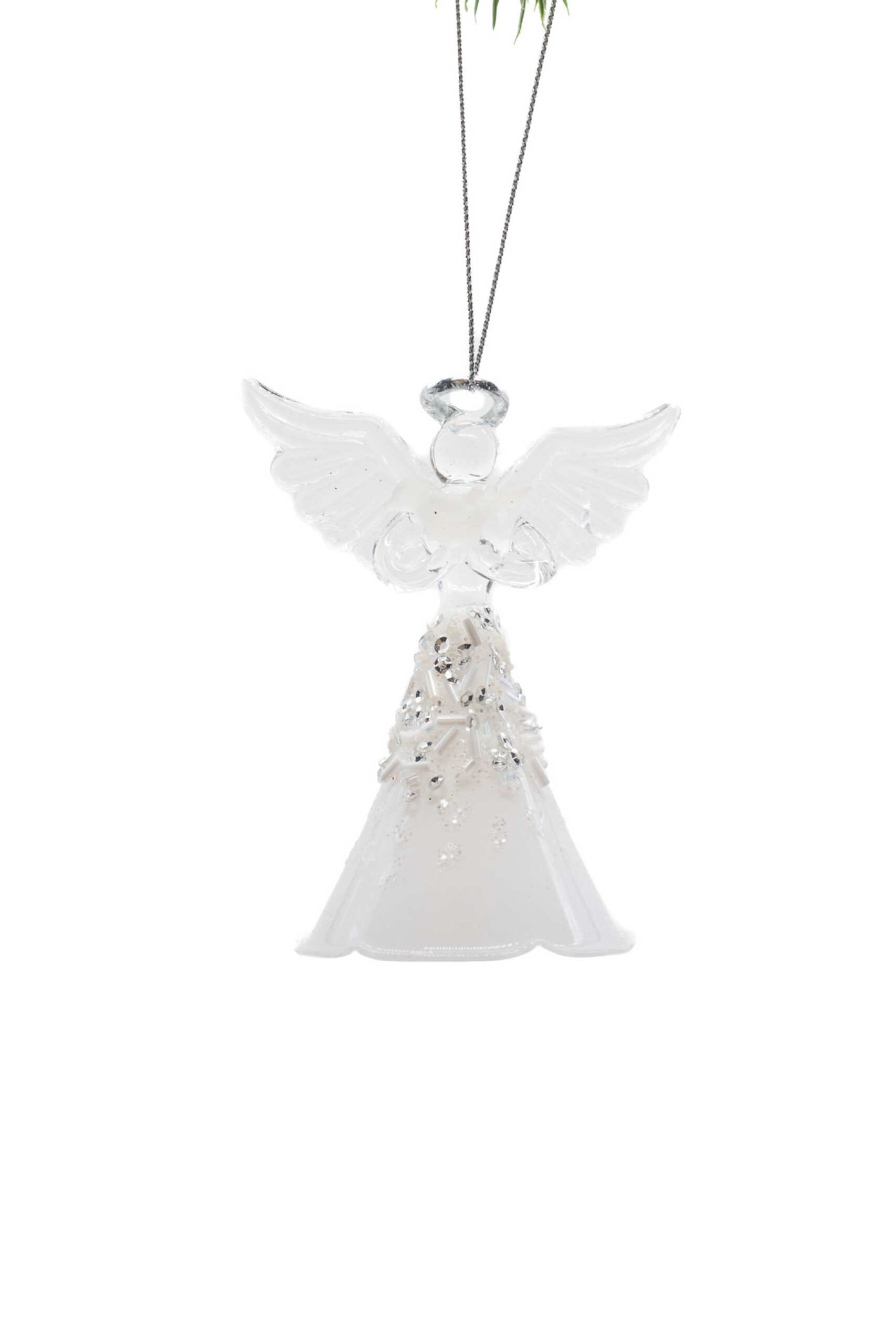 Clear/White Glass Hanging Peaceful Angel Ornament holding Dove