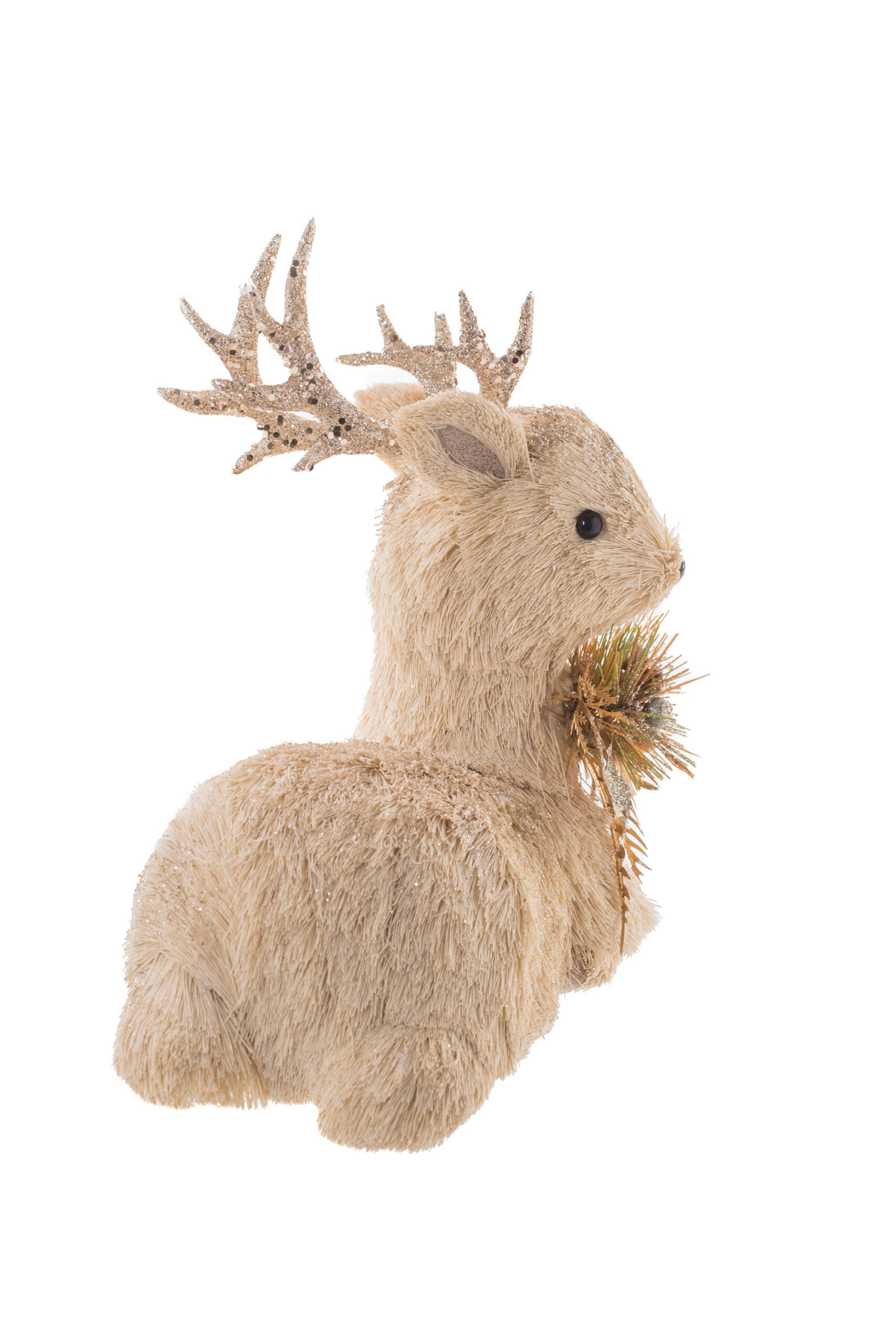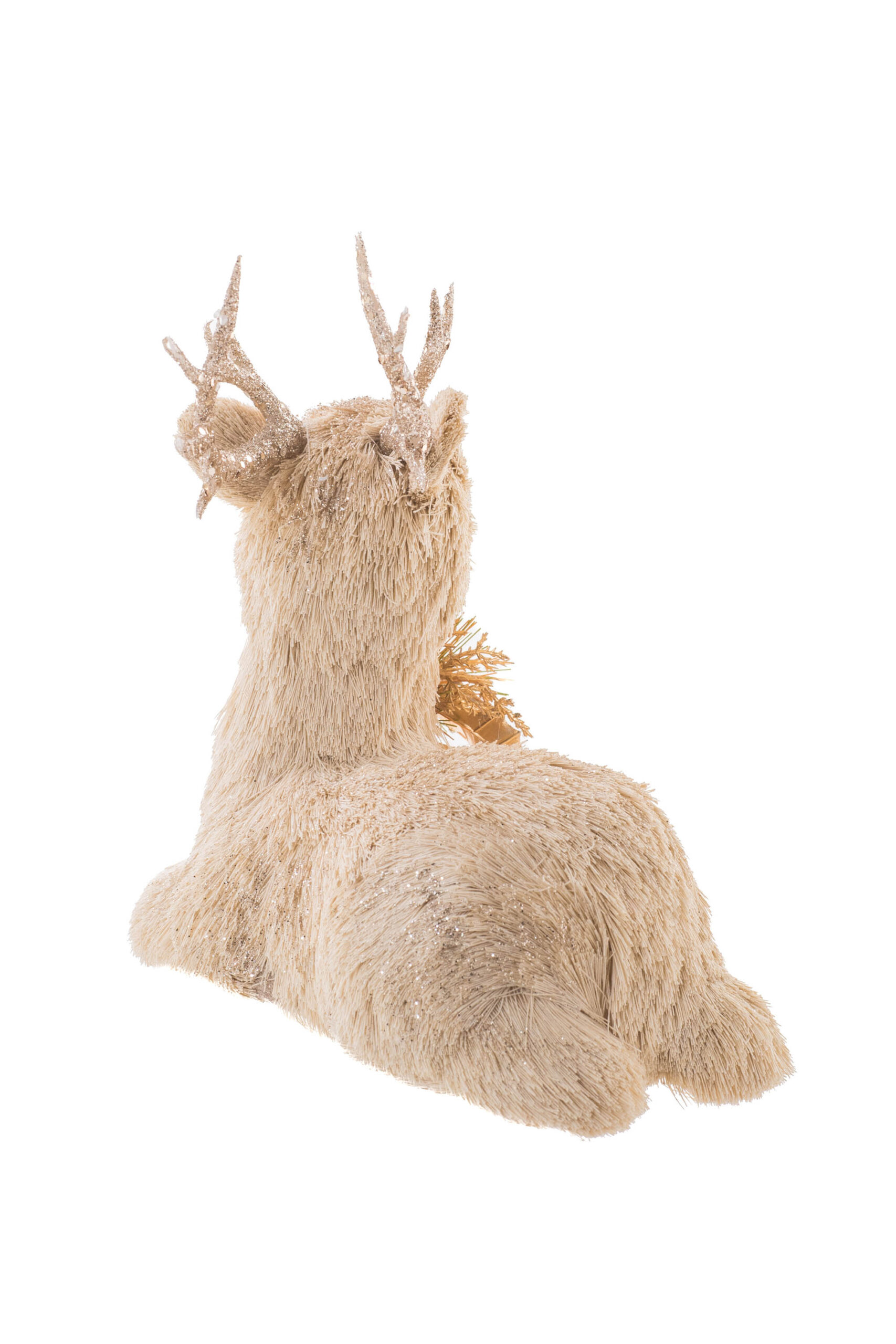Cream/Gold Straw Fur Lying Down Sparkly Deer with Gold Spray
