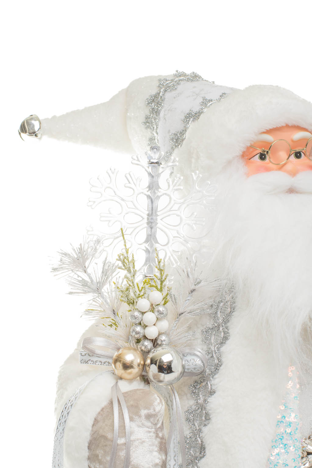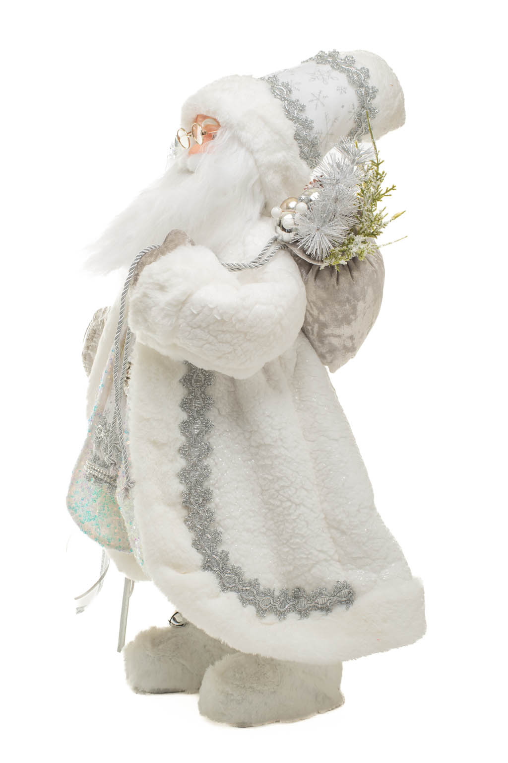 Frosted White and Silver Nordic Santa Carrying a Gift Sack