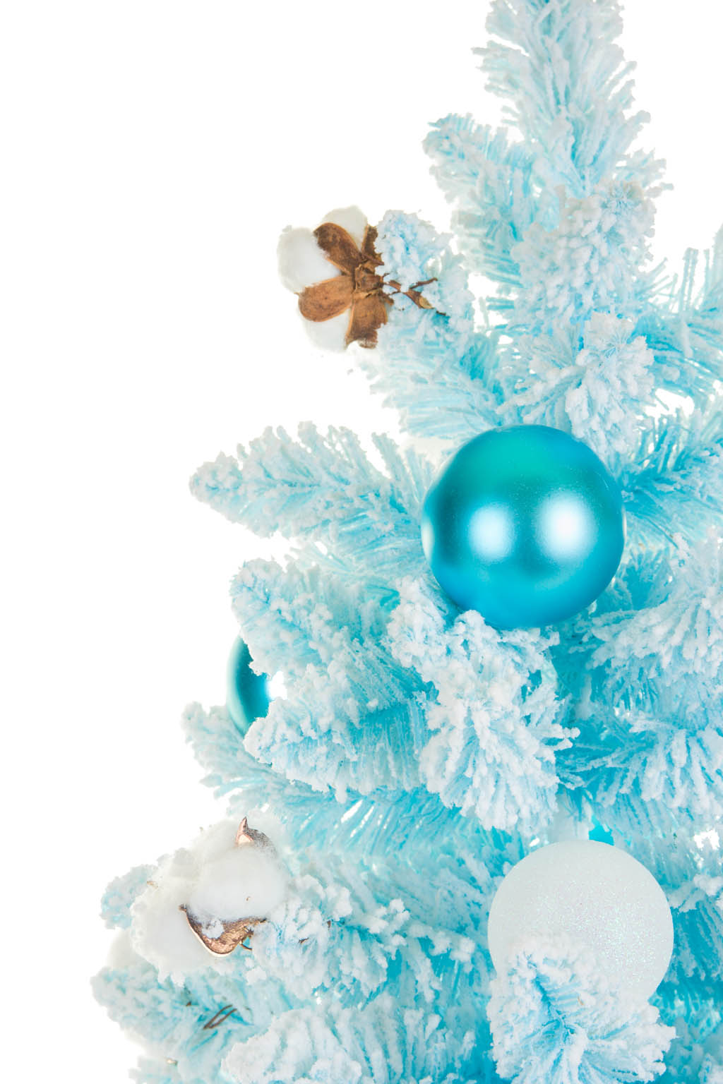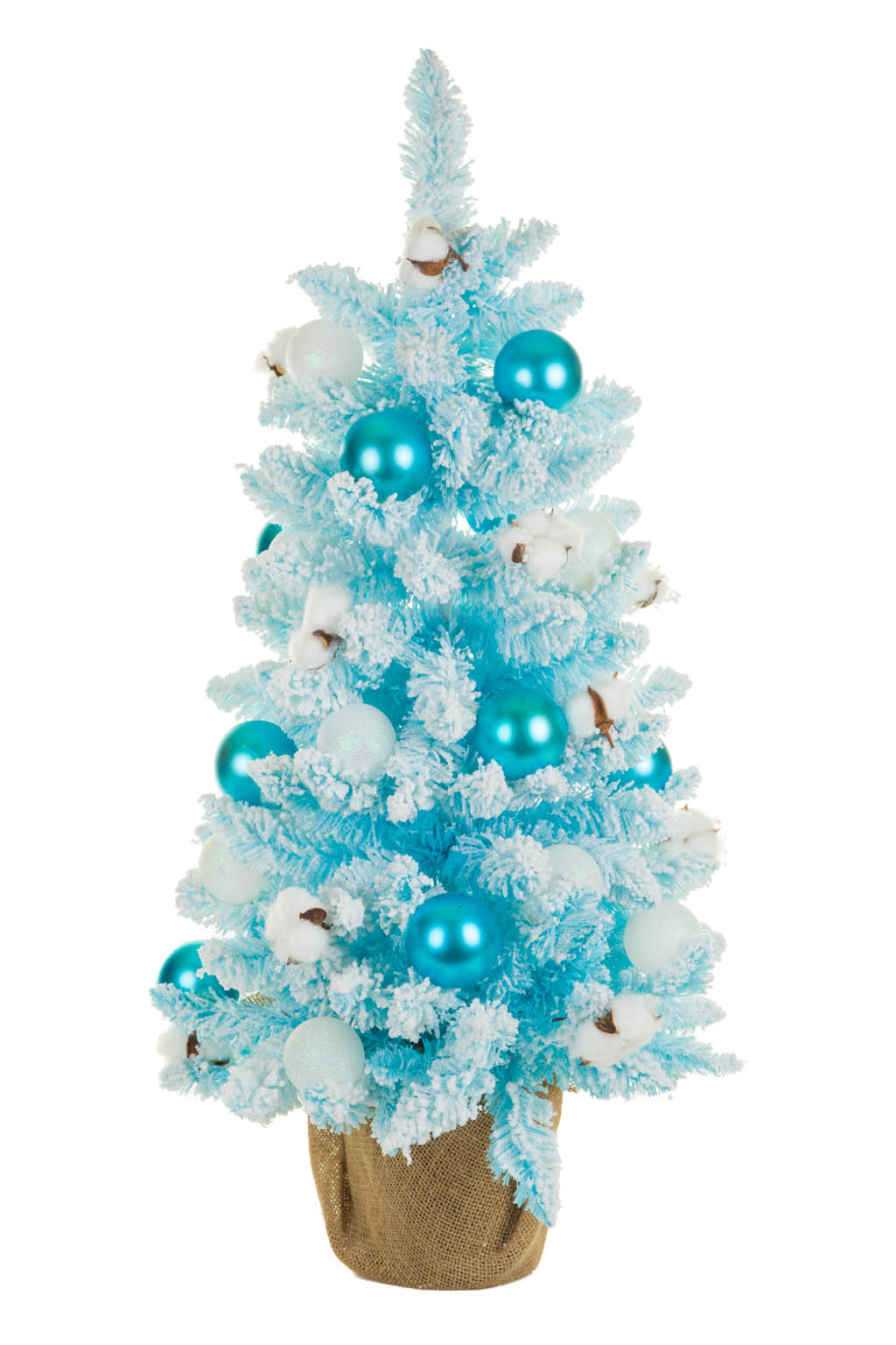 Frosty White and Blue Cotton Christmas Tree with Ornaments