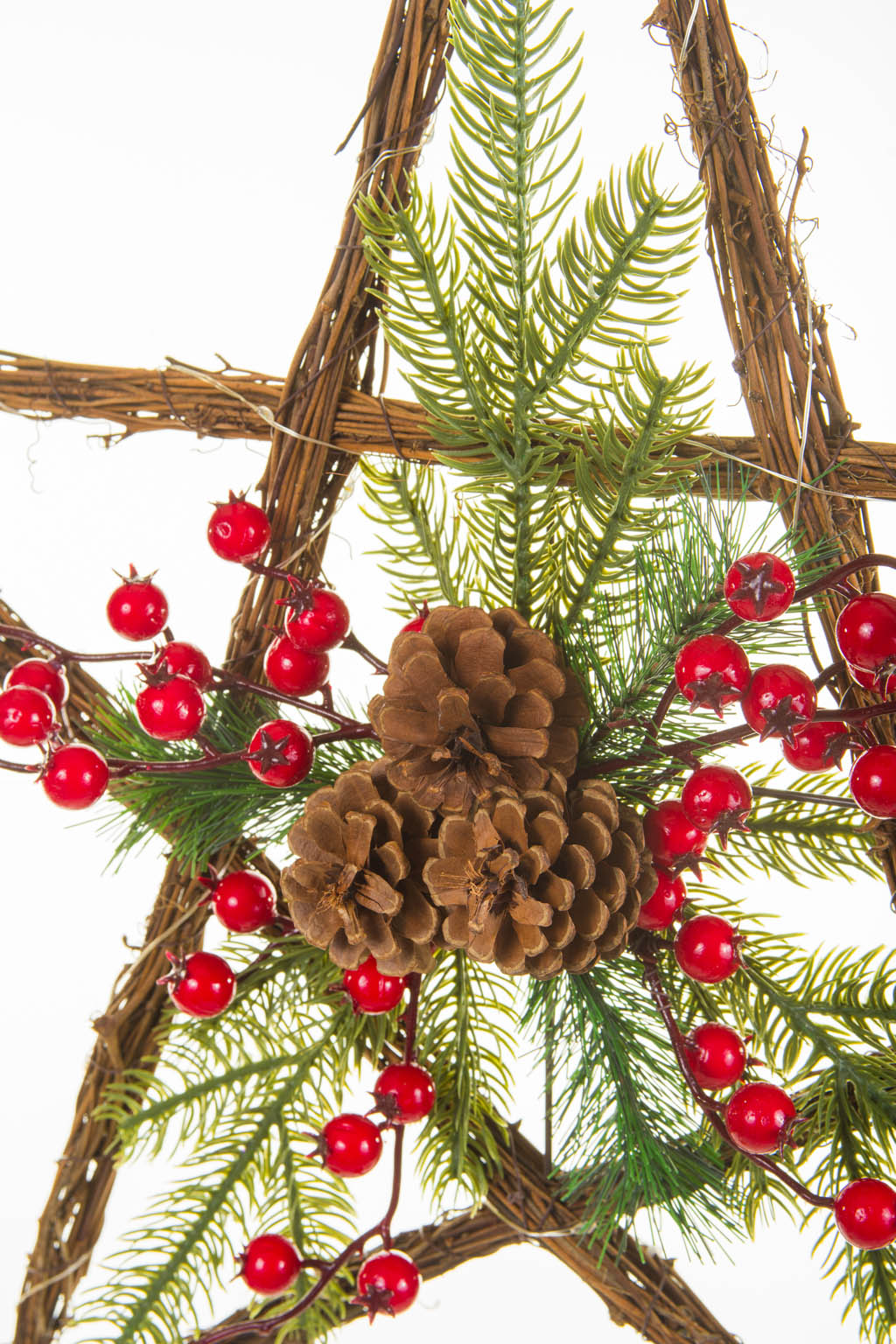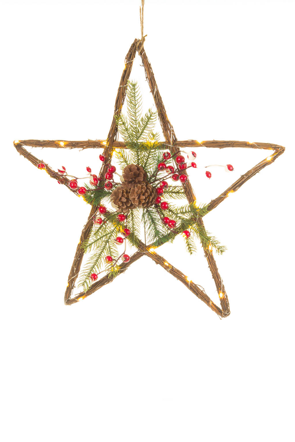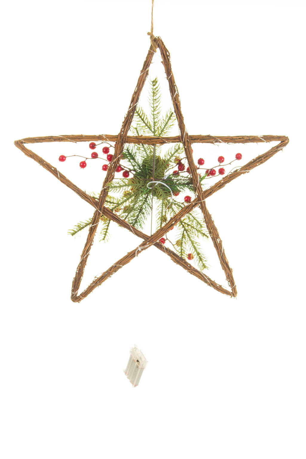 Hanging Brown and Green Handwoven Warm White LED Christmas Star