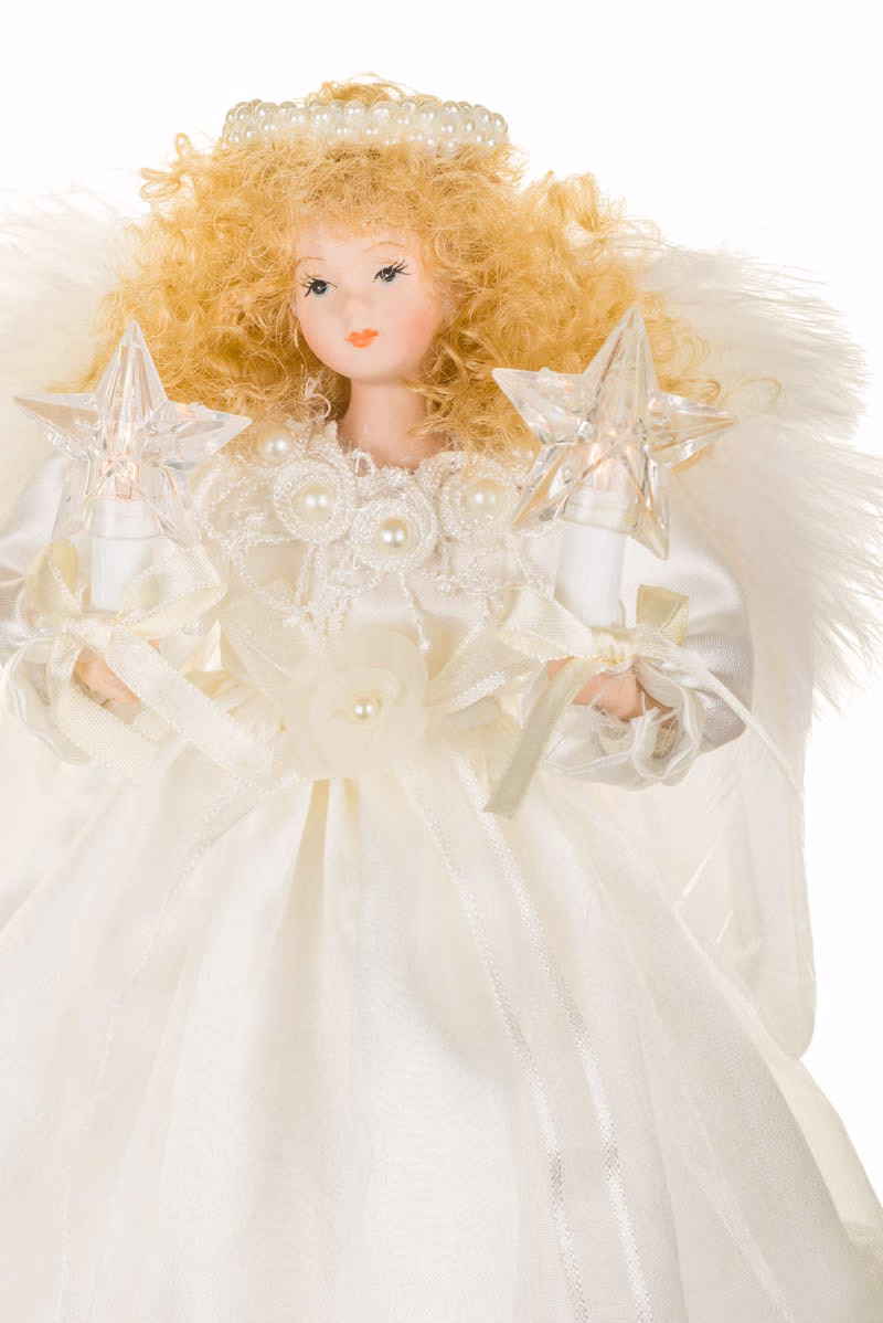 This pure, solemn Angel has a beautiful Ivory Gown sure to inspire with its pure design and classic touch.