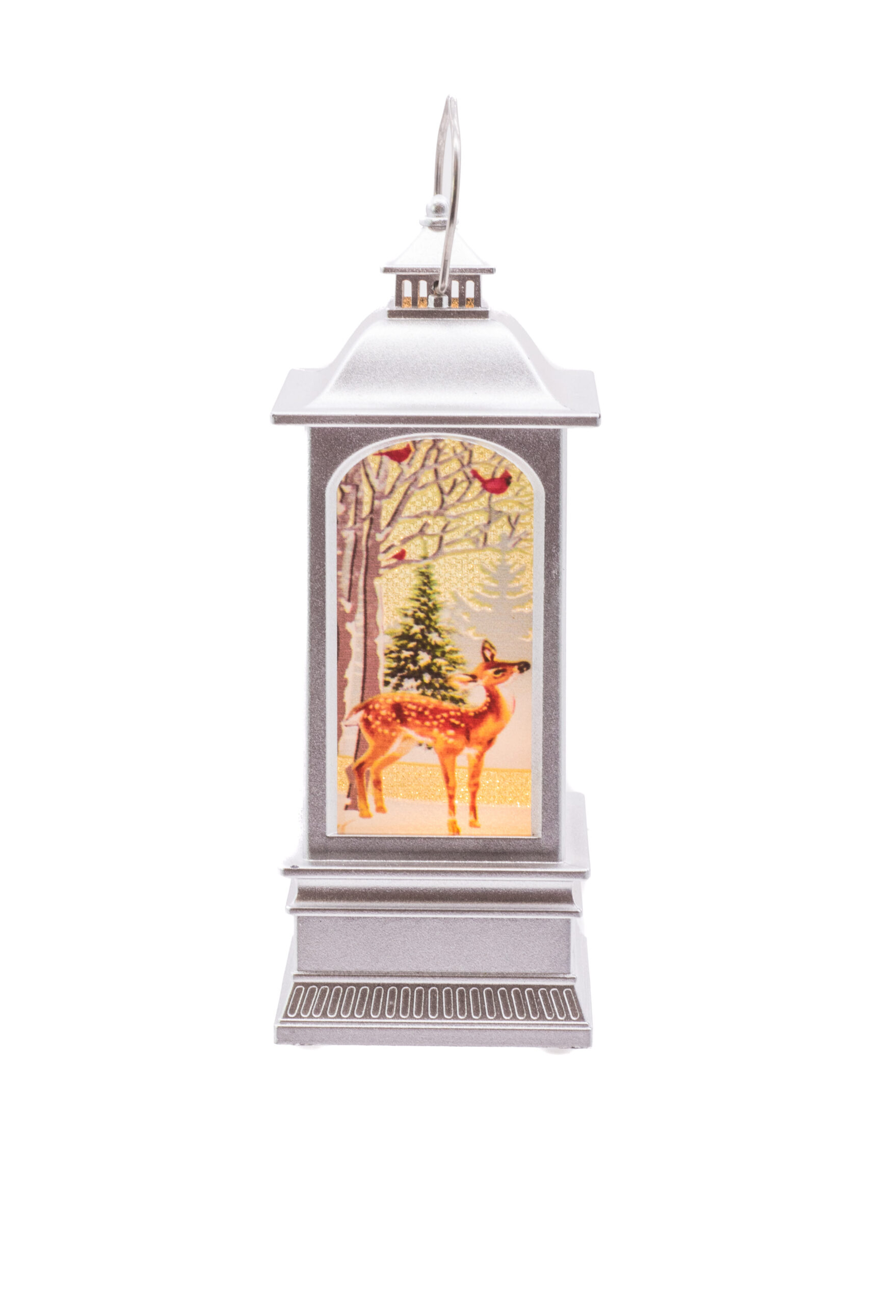 Silver Light-Up Small LED Christmas Lantern with Reindeer-Scape