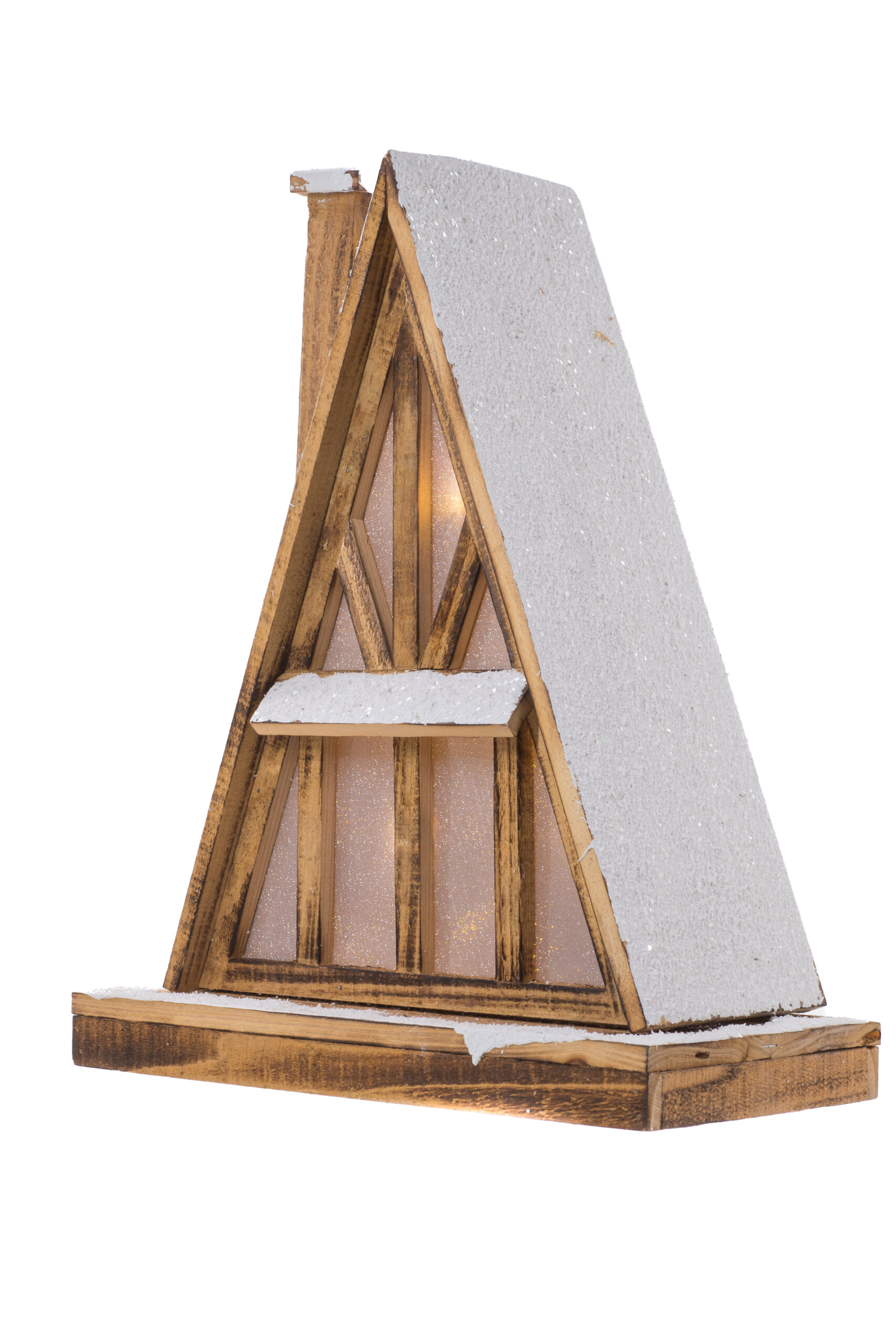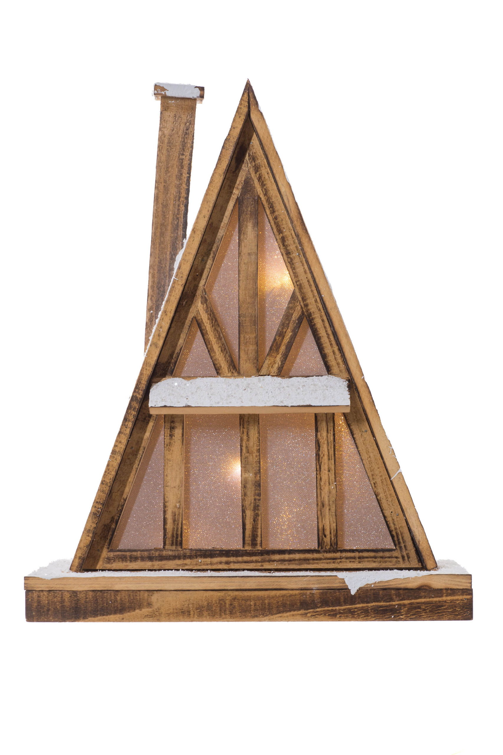 Smokey/White Wood Glittered Triangular LED House