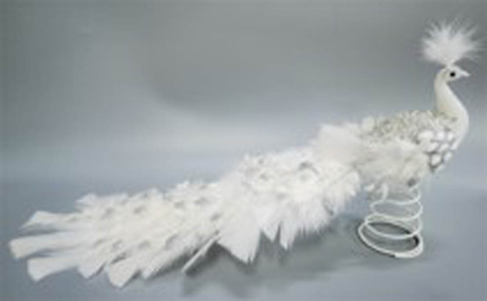 White and Silver Glittery Peacock with Decorated Feathers
