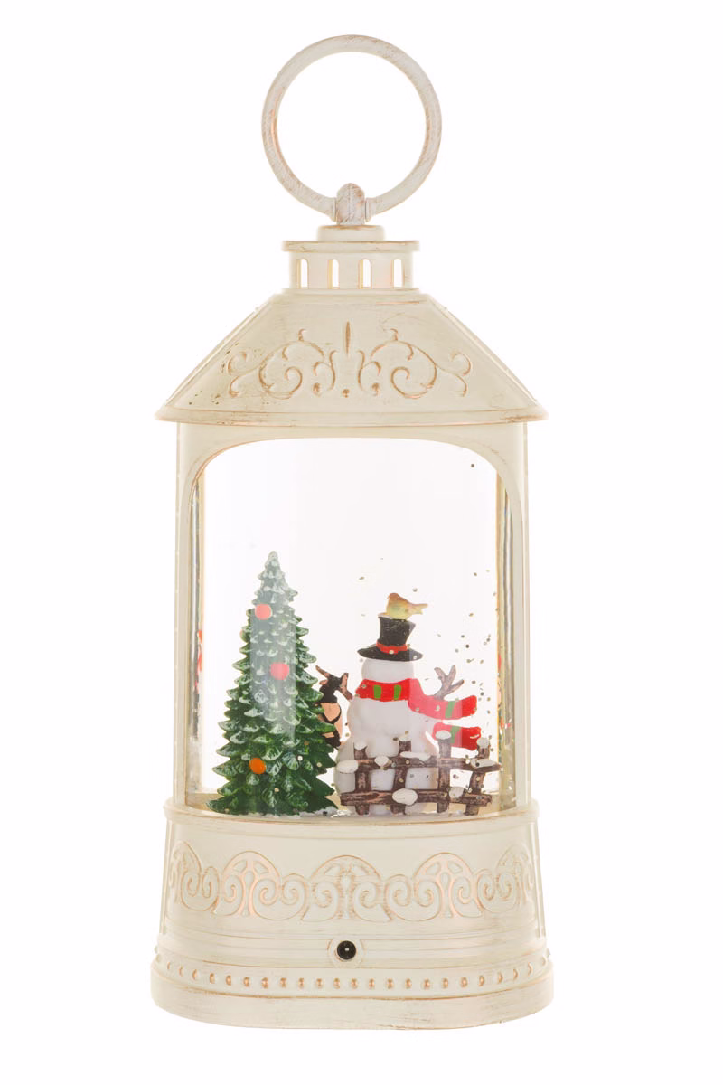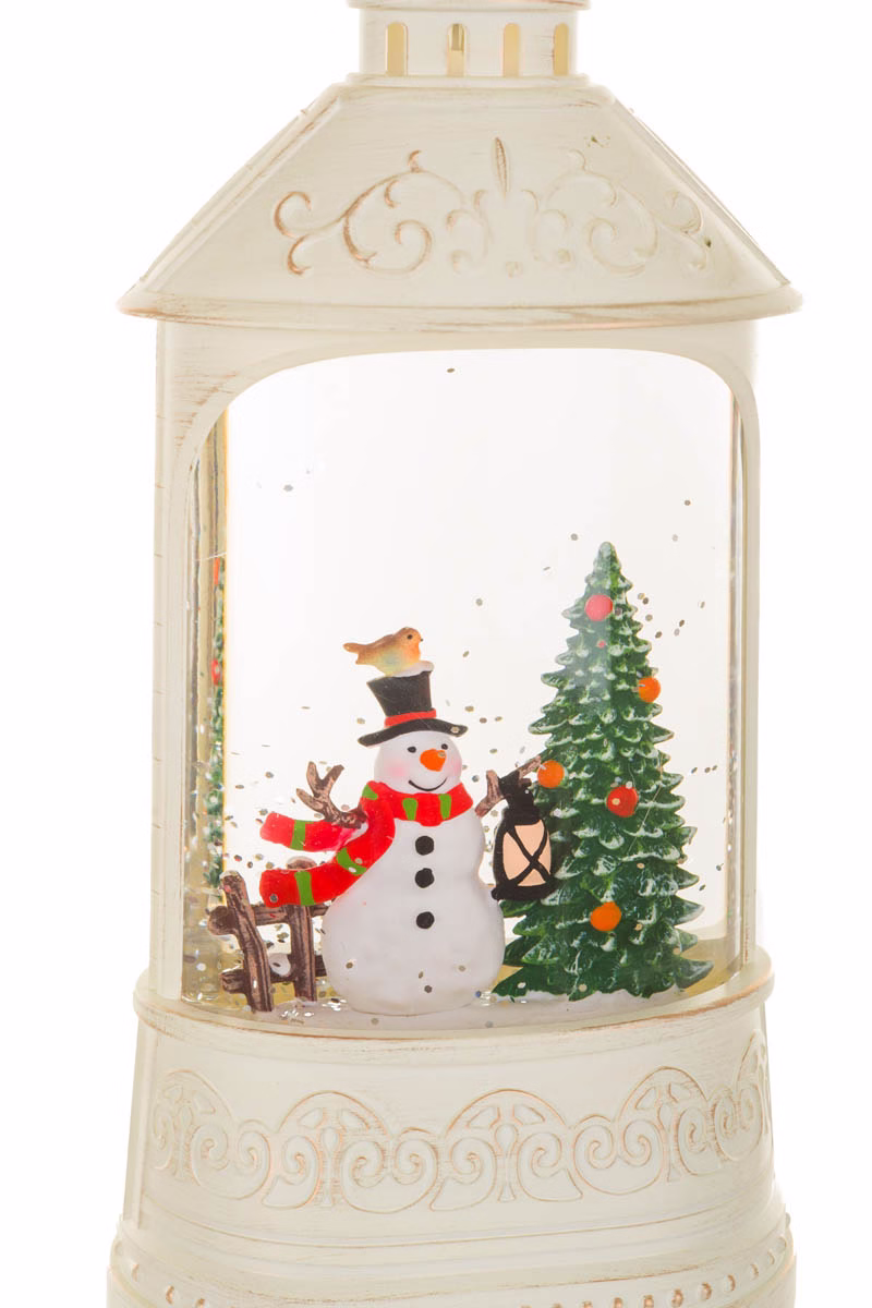 Is there anything more magical than the falling snow on a Christmas morning? And while the weather may not always be in your favor, our LED Lantern Snow Globe with Wandering Snowman and swirling glitter will always be there to pick up the slack. This one will doubtlessly brighten up your space, with its White Frame, frosty theming and wintery feel.